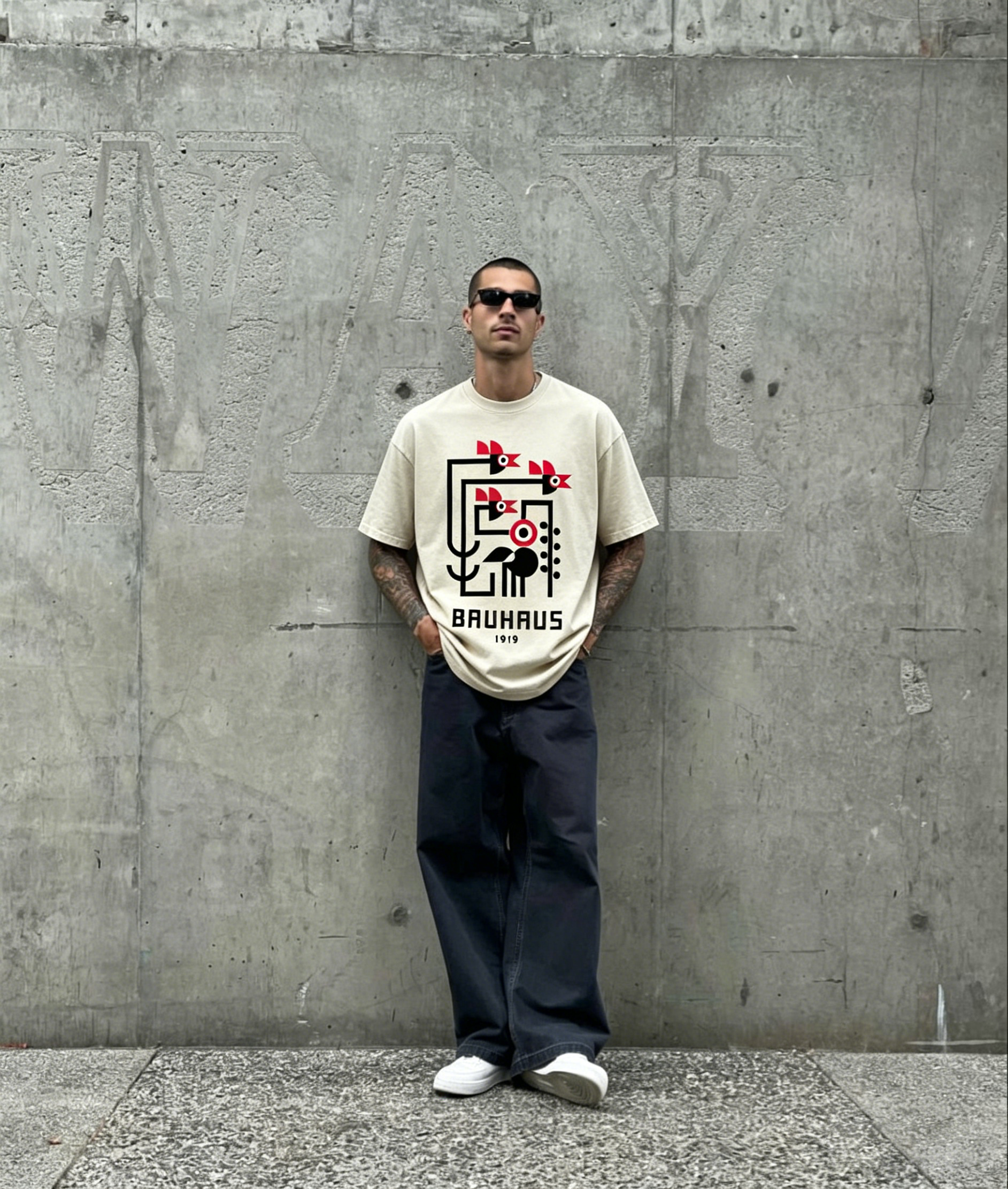 We also draw inspiration from Bauhaus design, blending its clean lines and geometric shapes with Japanese minimalism. The result? Sleek, modern prints that feel fresh and timeless—perfect for anyone who loves streetwear with a sophisticated twist. These tees prove that oversized style doesn’t have to be loud; it can be understated, elegant, and full of character.