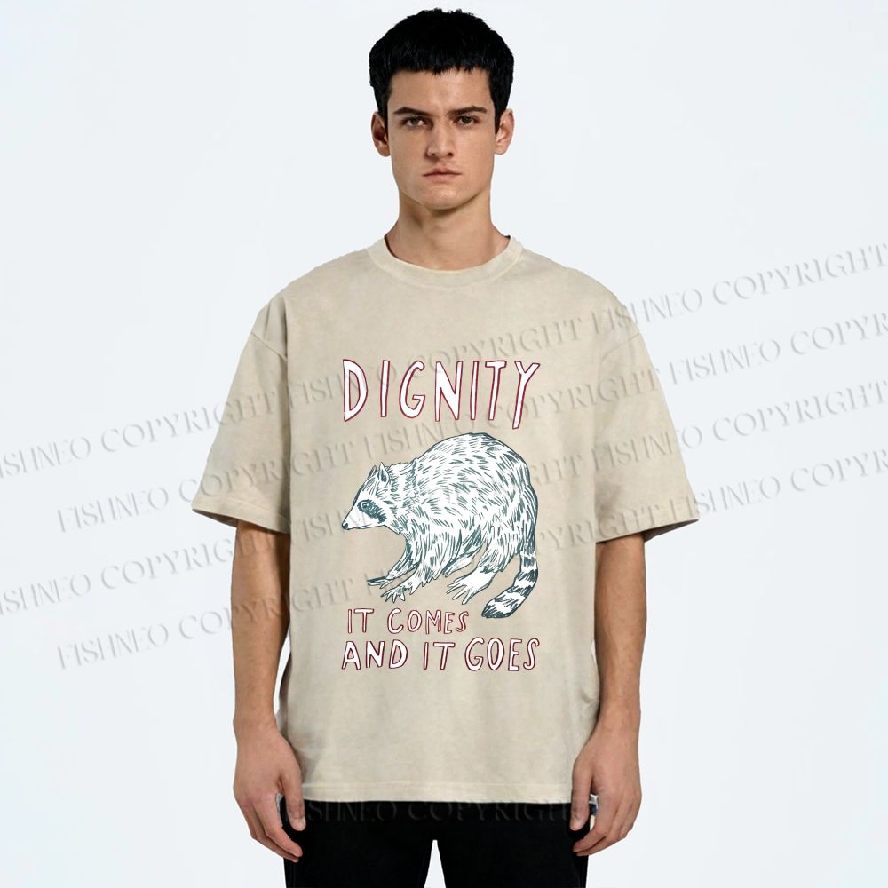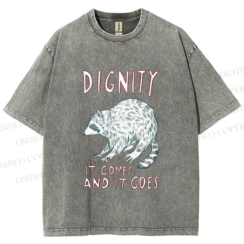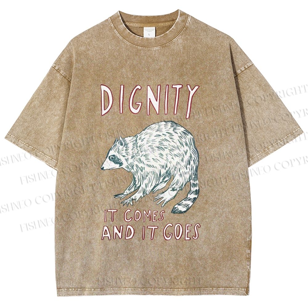 Unisex Dignity Comes And Goes Raccoon Printed Washed Tee