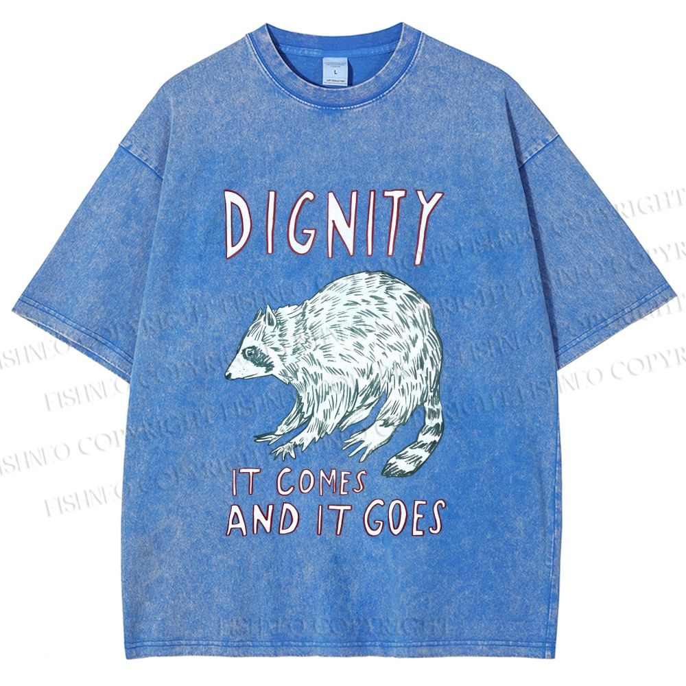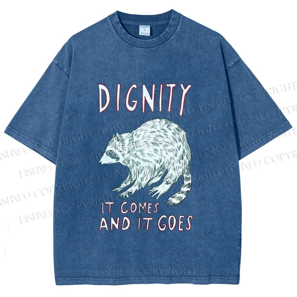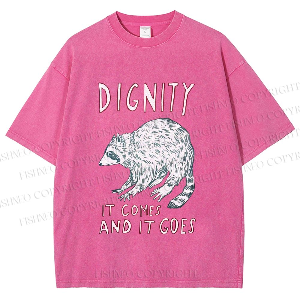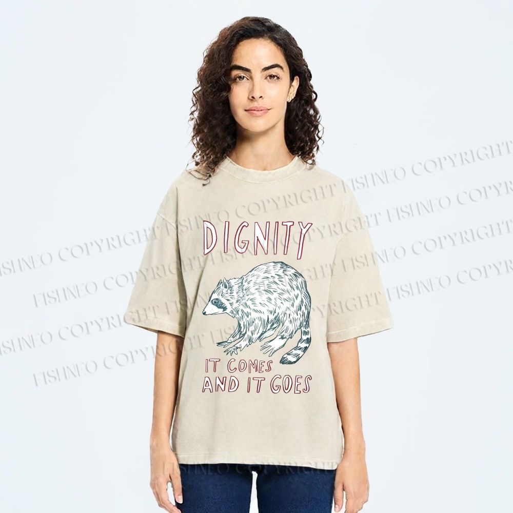 Unisex Dignity Comes And Goes Raccoon Printed Washed Tee