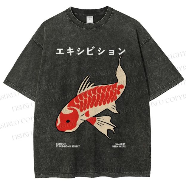 Unisex Japanese Koi Fish Printed Washed Tee