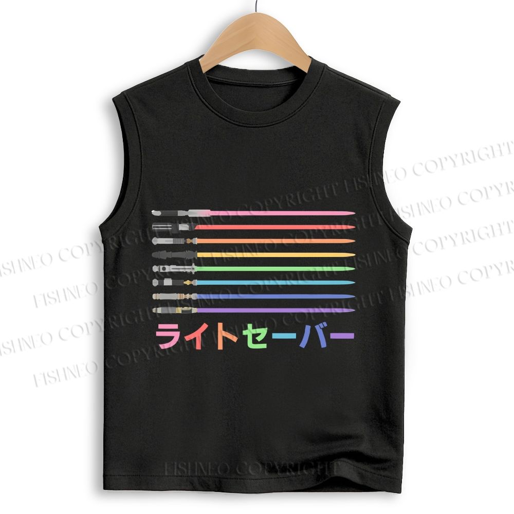 Unisex Lightsaber Vintage Printed Cotton Tank Top