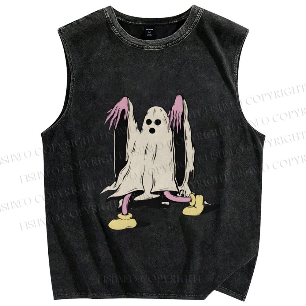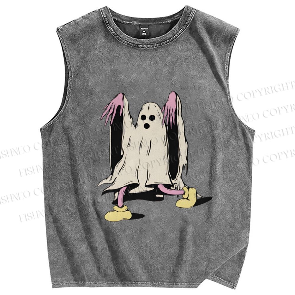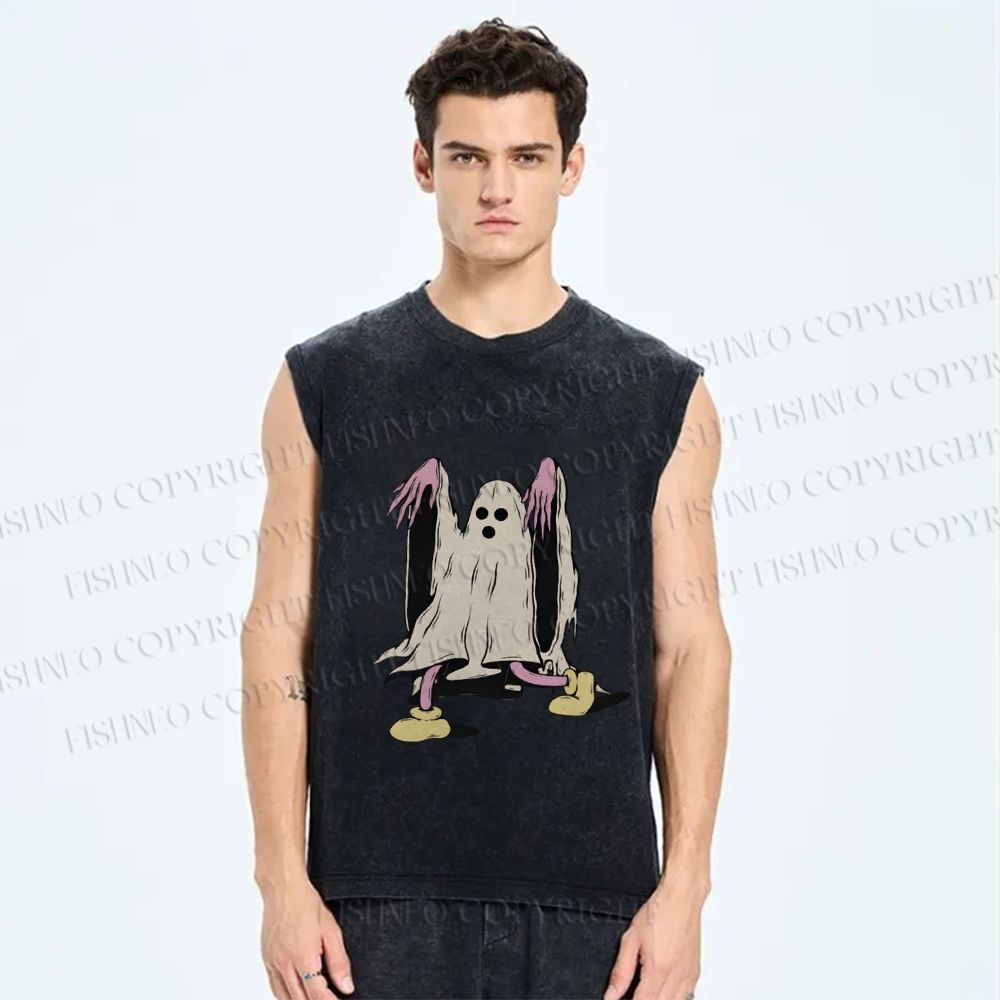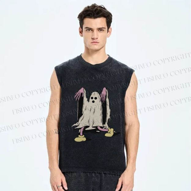 Unisex Vintage Halloween Ghost Printed Washed Tank Top