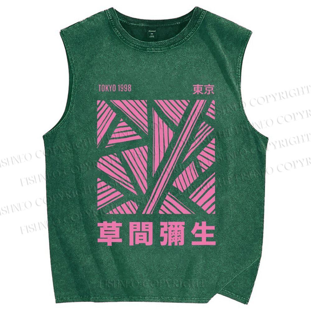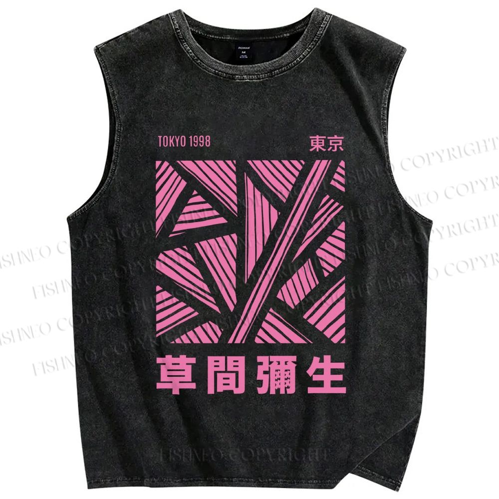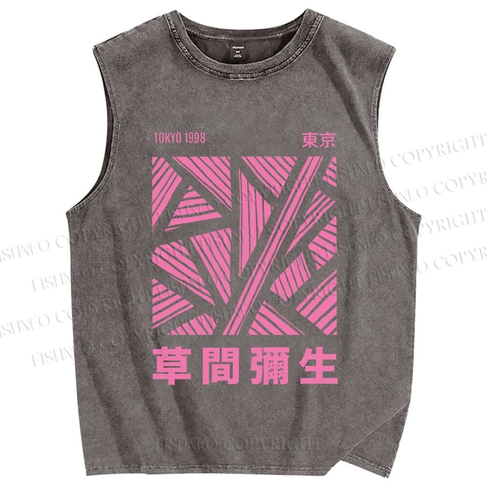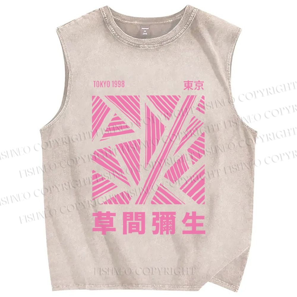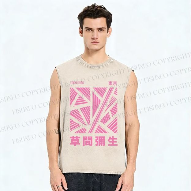 Unisex Yayoi Kusama Pink Graffiti Printed Washed Tank Top