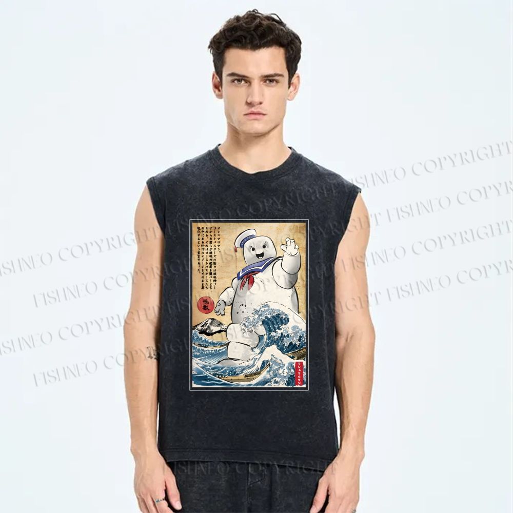 Unisex Marshmallow in Japan Printed Washed Tank Top