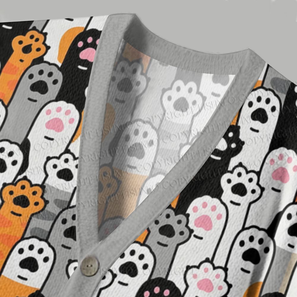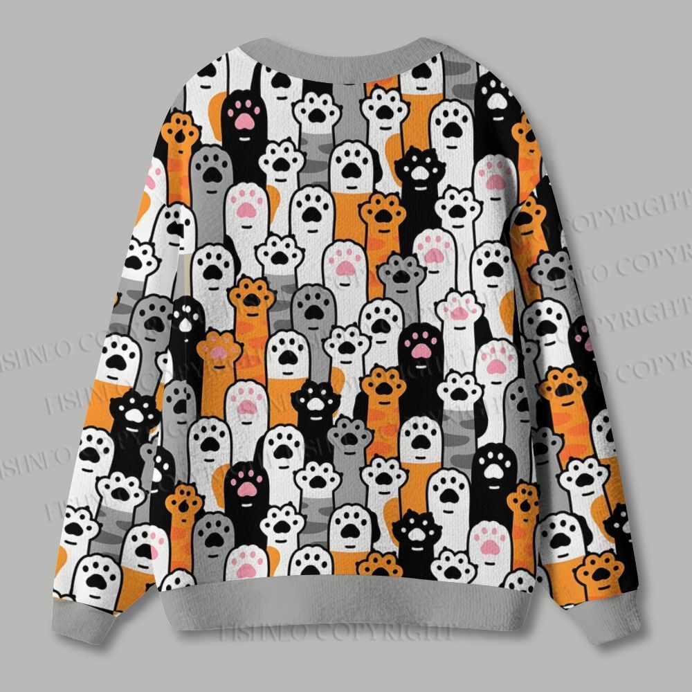Cartoon Cat Paw Printed Ugly Cardigan Sweater
