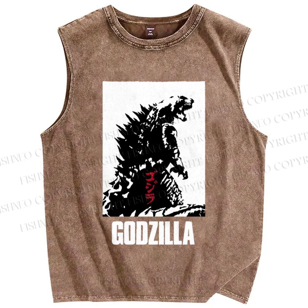 Unisex Godzilla Printed Washed Tank Top
