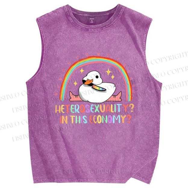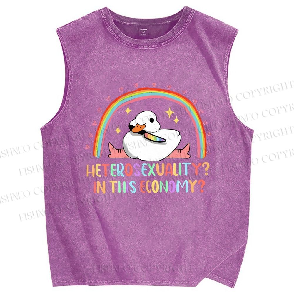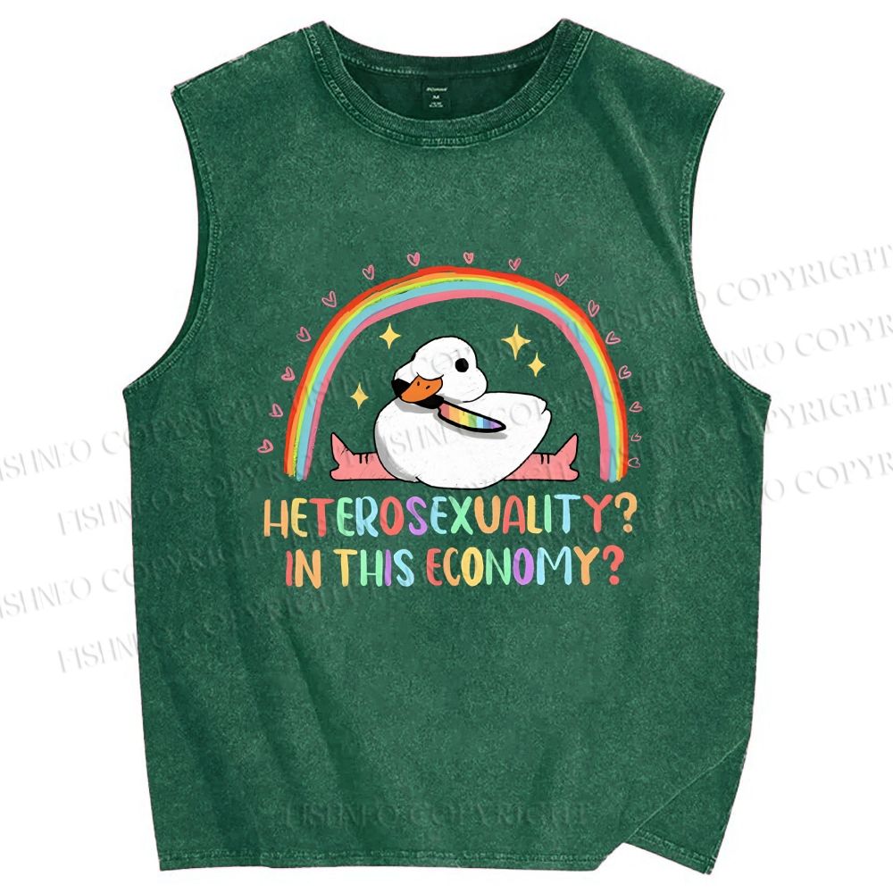 Unisex Heterosexuality in This Economy Printed Washed Tank Top