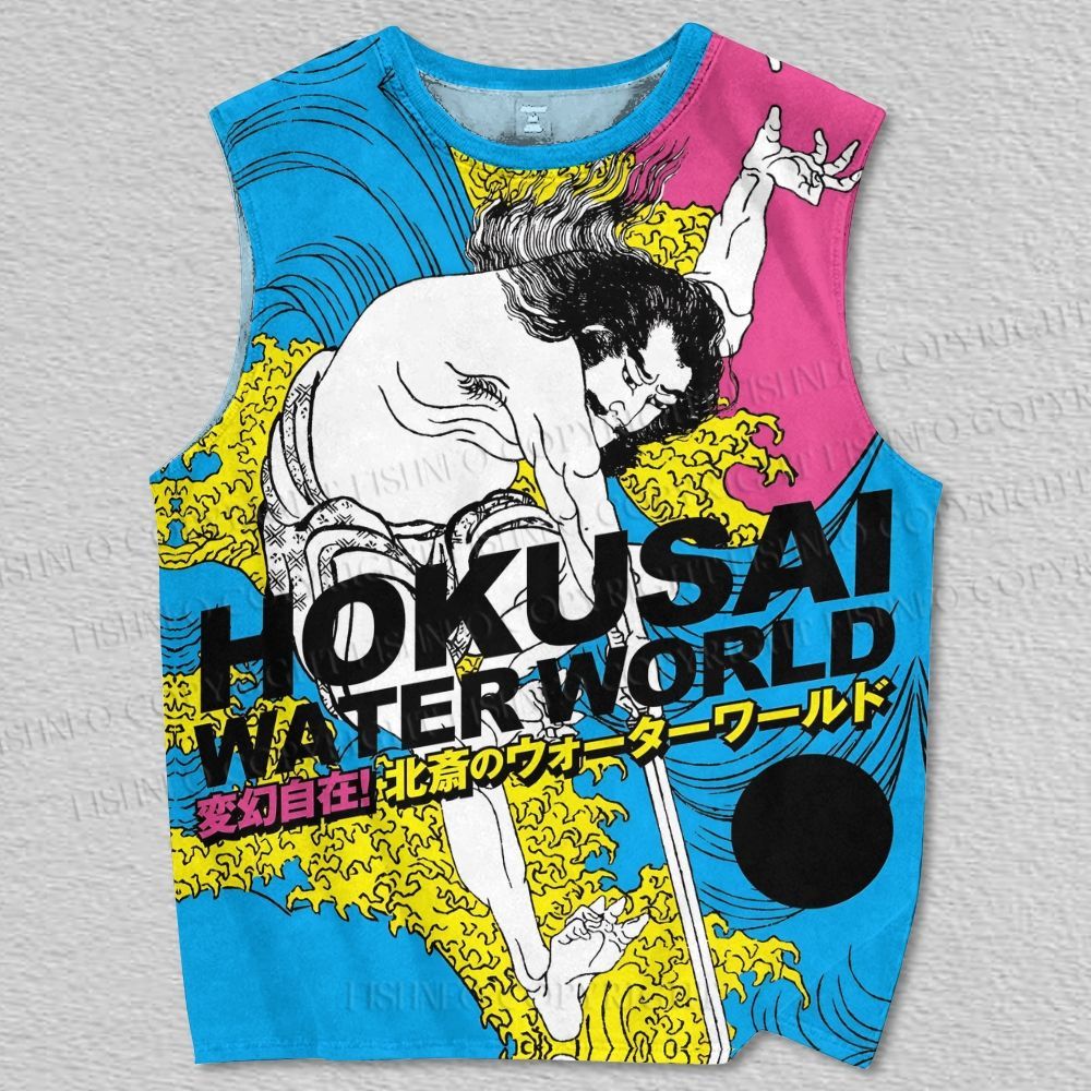 Unisex Katsushika Hokusai Funny man in Wave Printed Tank Top