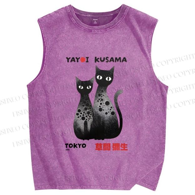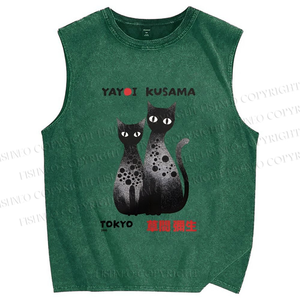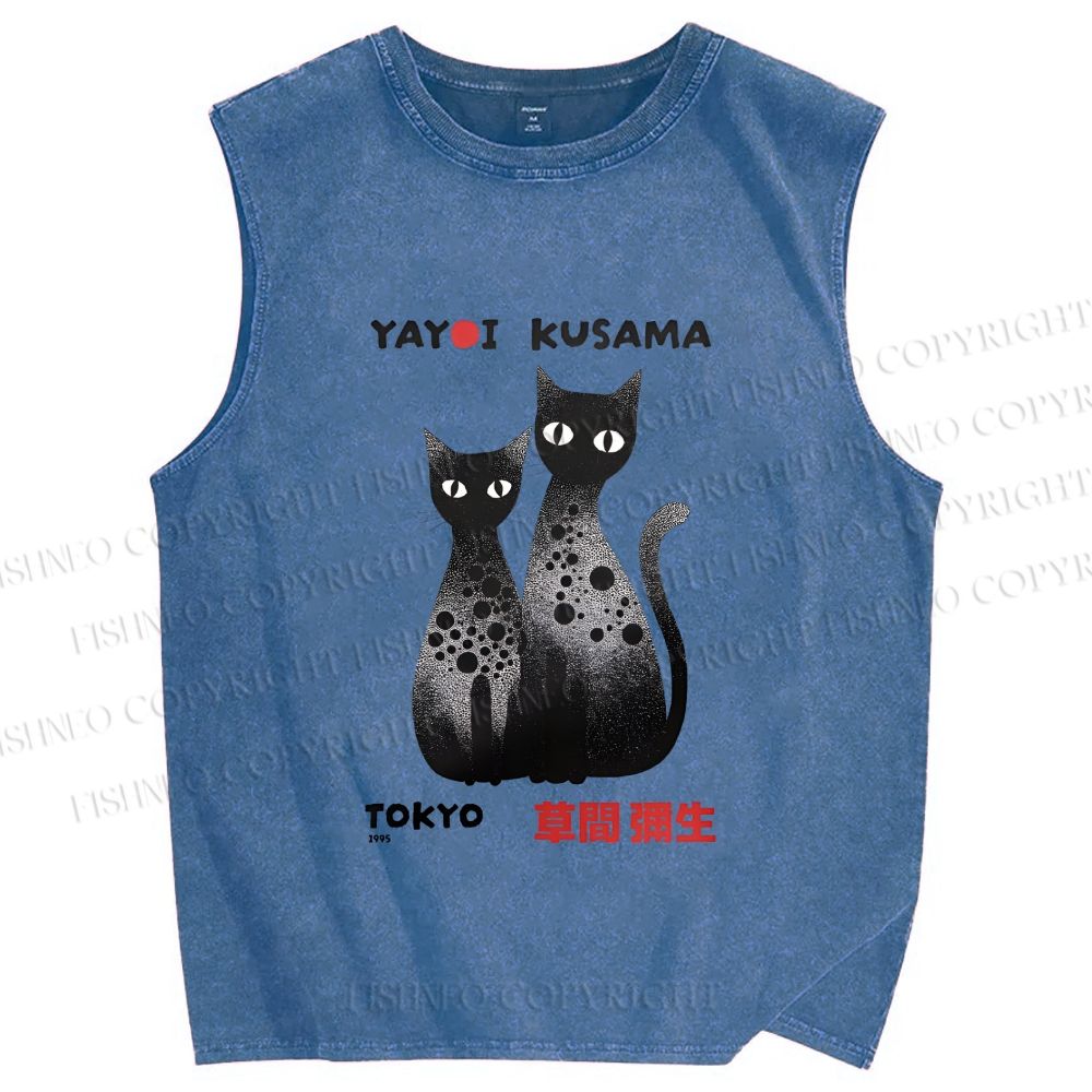 Unisex Yayoi Kusama Cat Printed Washed Tank Top
