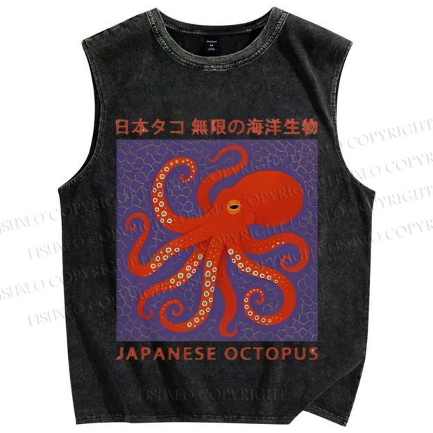Unisex Retro Japanese Octopus Printed Washed Tank Top