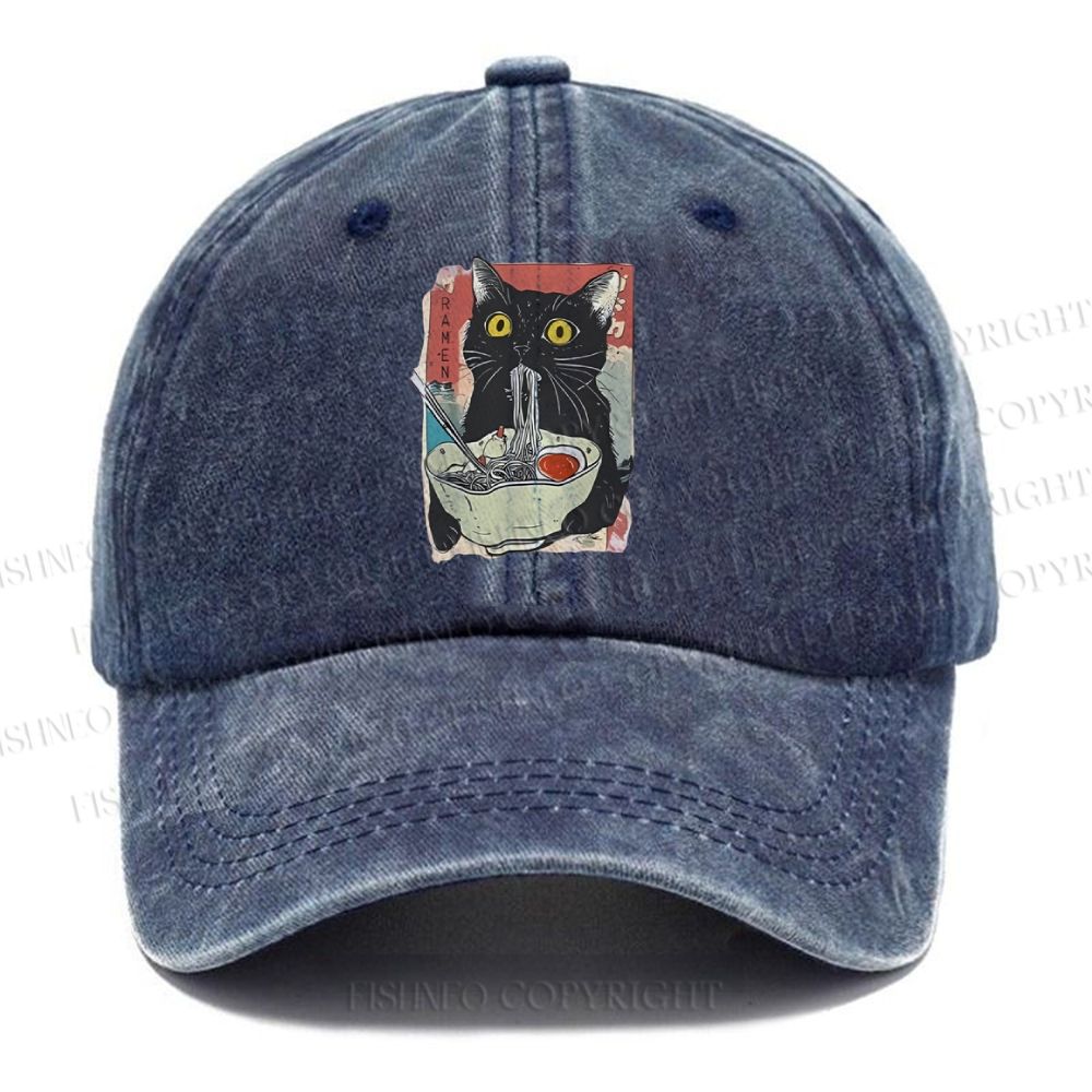 Unisex Cute Cat Eating Ramen Vintage Casual Washed Cap