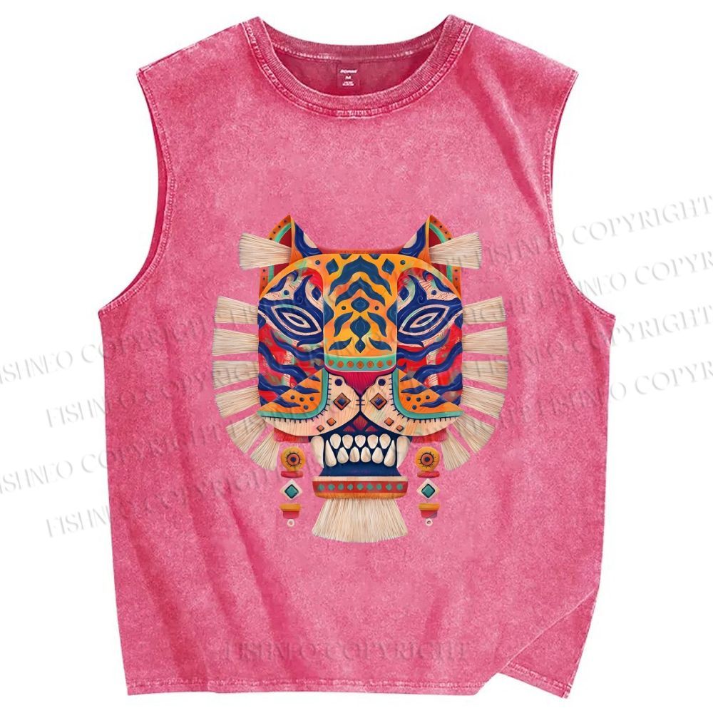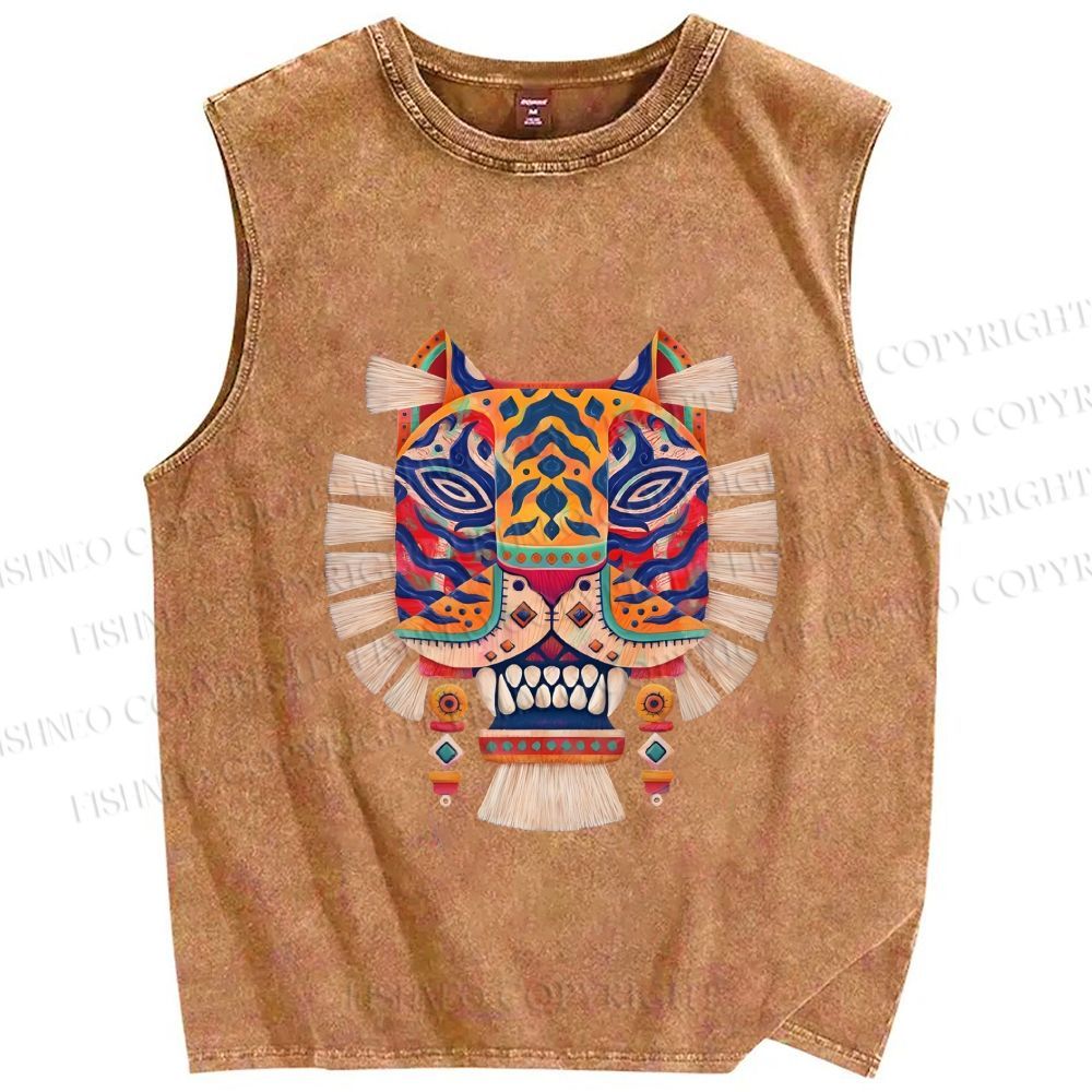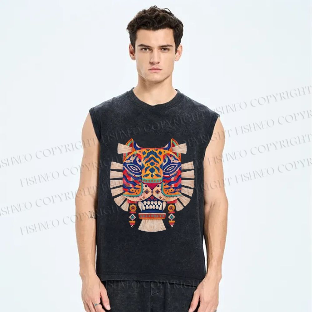Unisex Embroidered Ethnic Style Printed Washed Tank Top