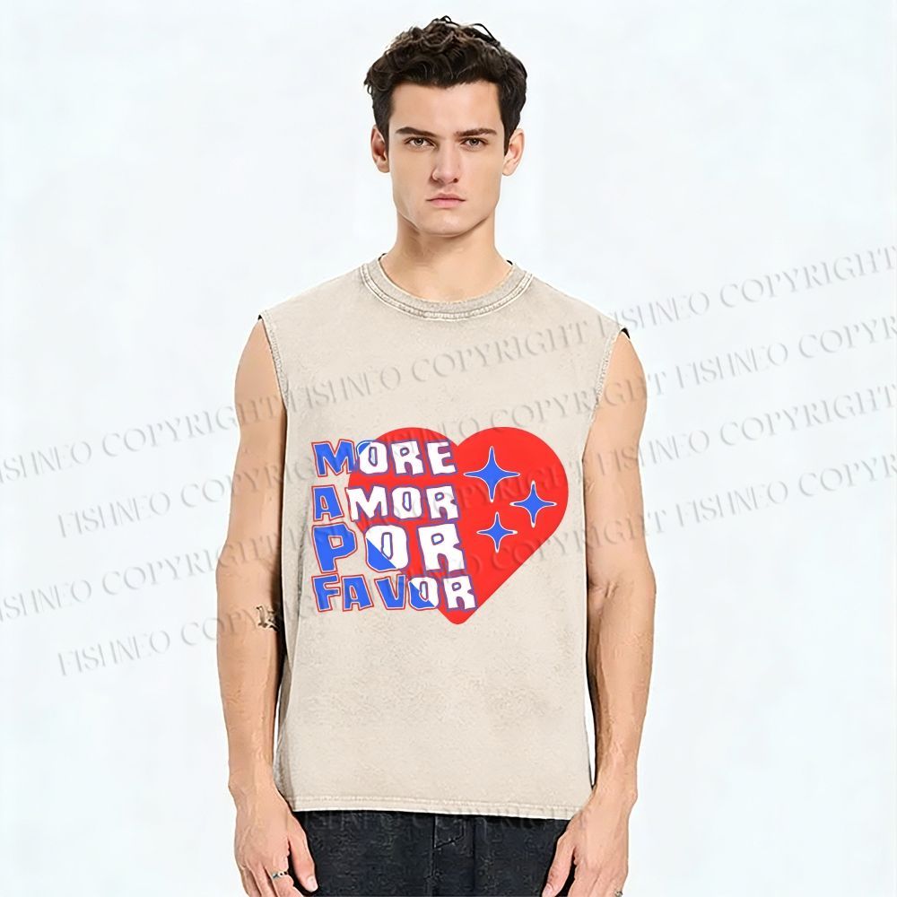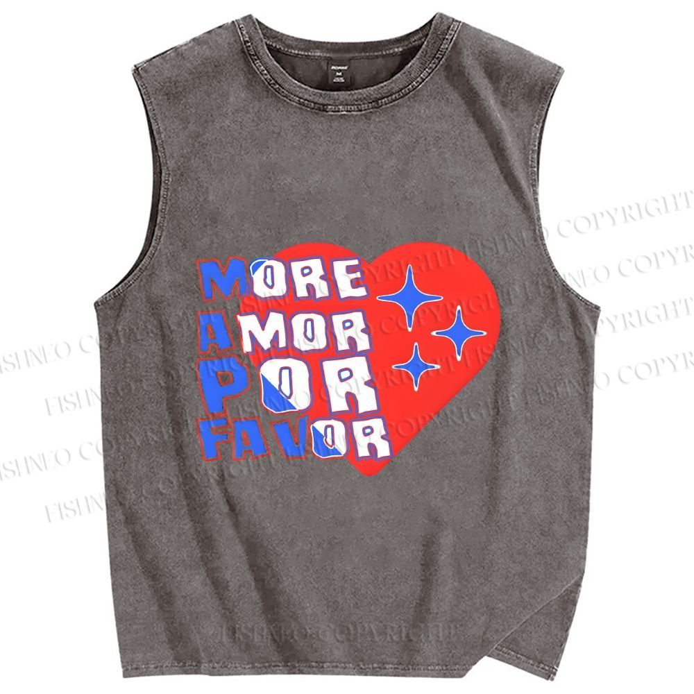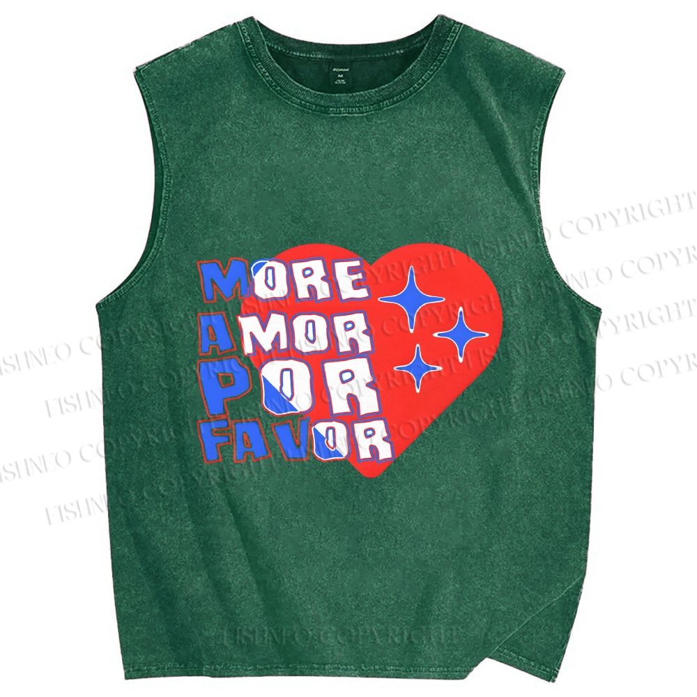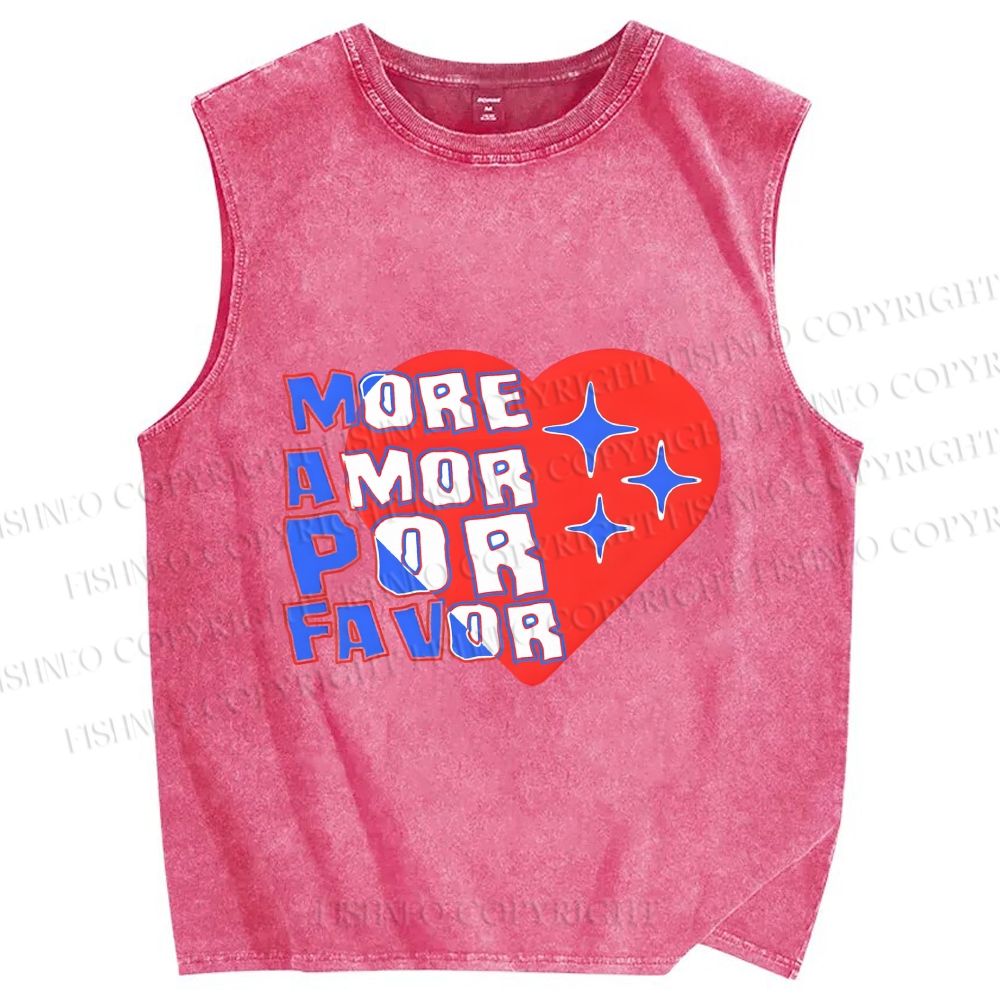 Unisex More Amor Por Favor Printed Washed Tank Top