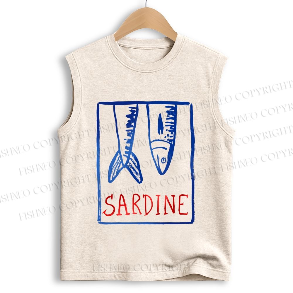 Unisex Vintage Sardine Fish In Box Printed Cotton Tank Top