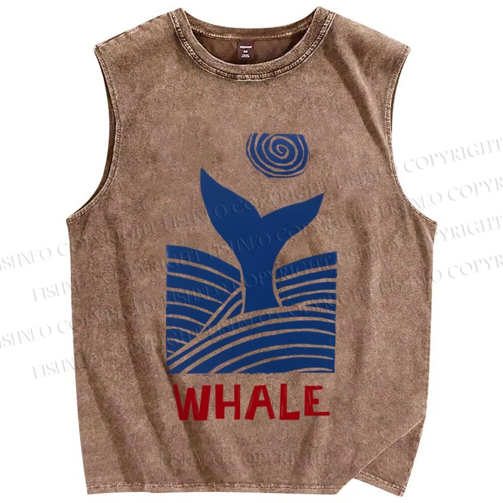 Unisex Vintage Wave Whale Printed Washed Tank Top