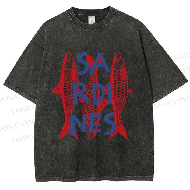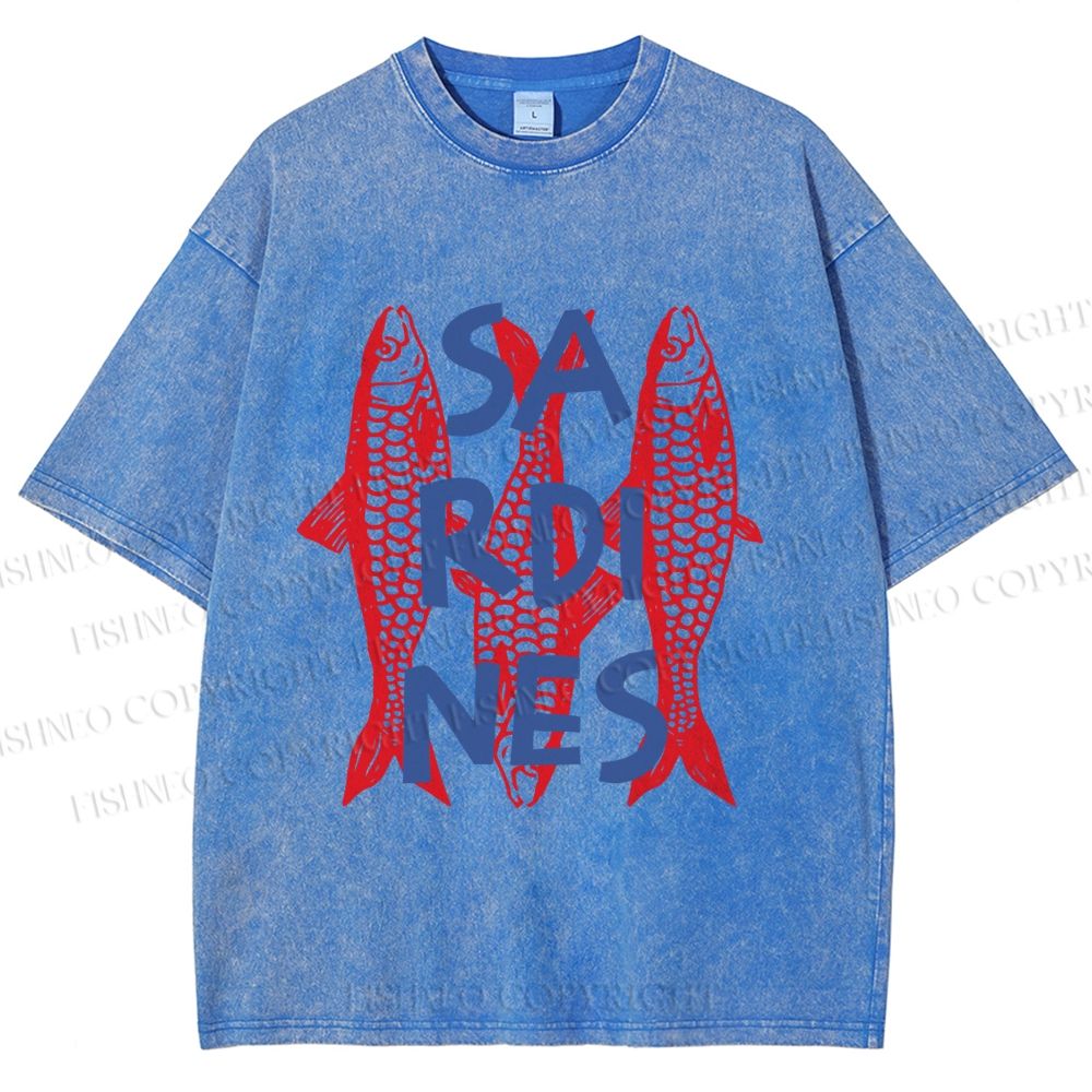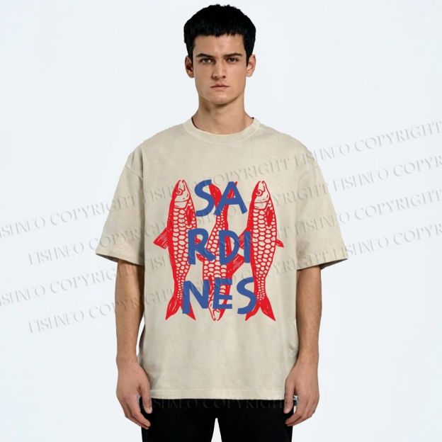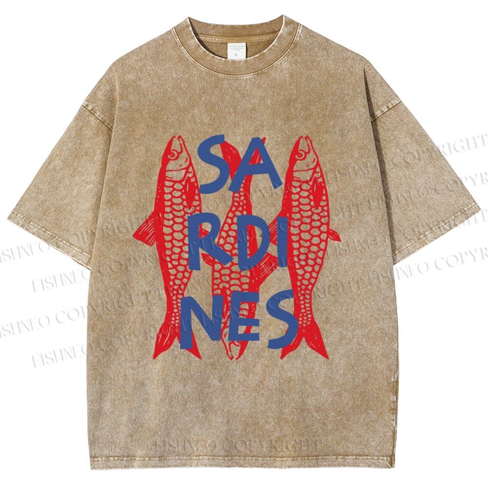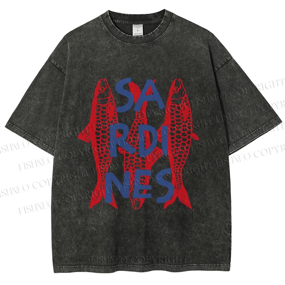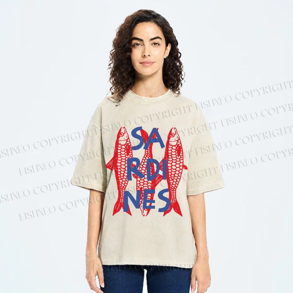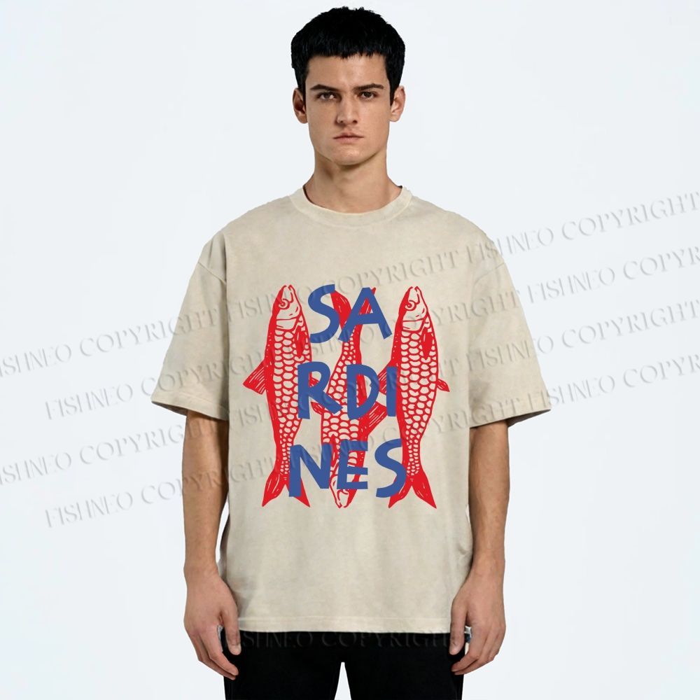 Unisex Vibrant Red Sardines Printed Washed Tee
