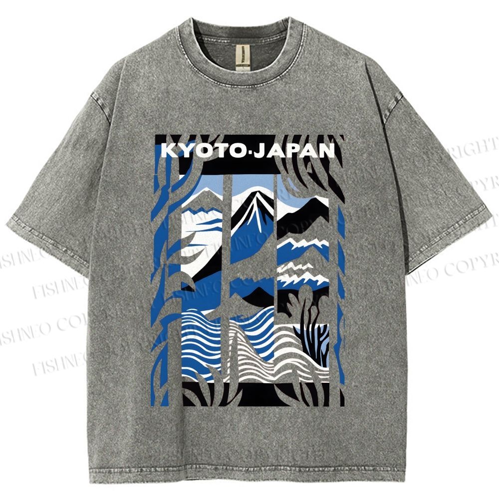 Unisex Vintage Japanese Mount Fuji Printed Washed Tee