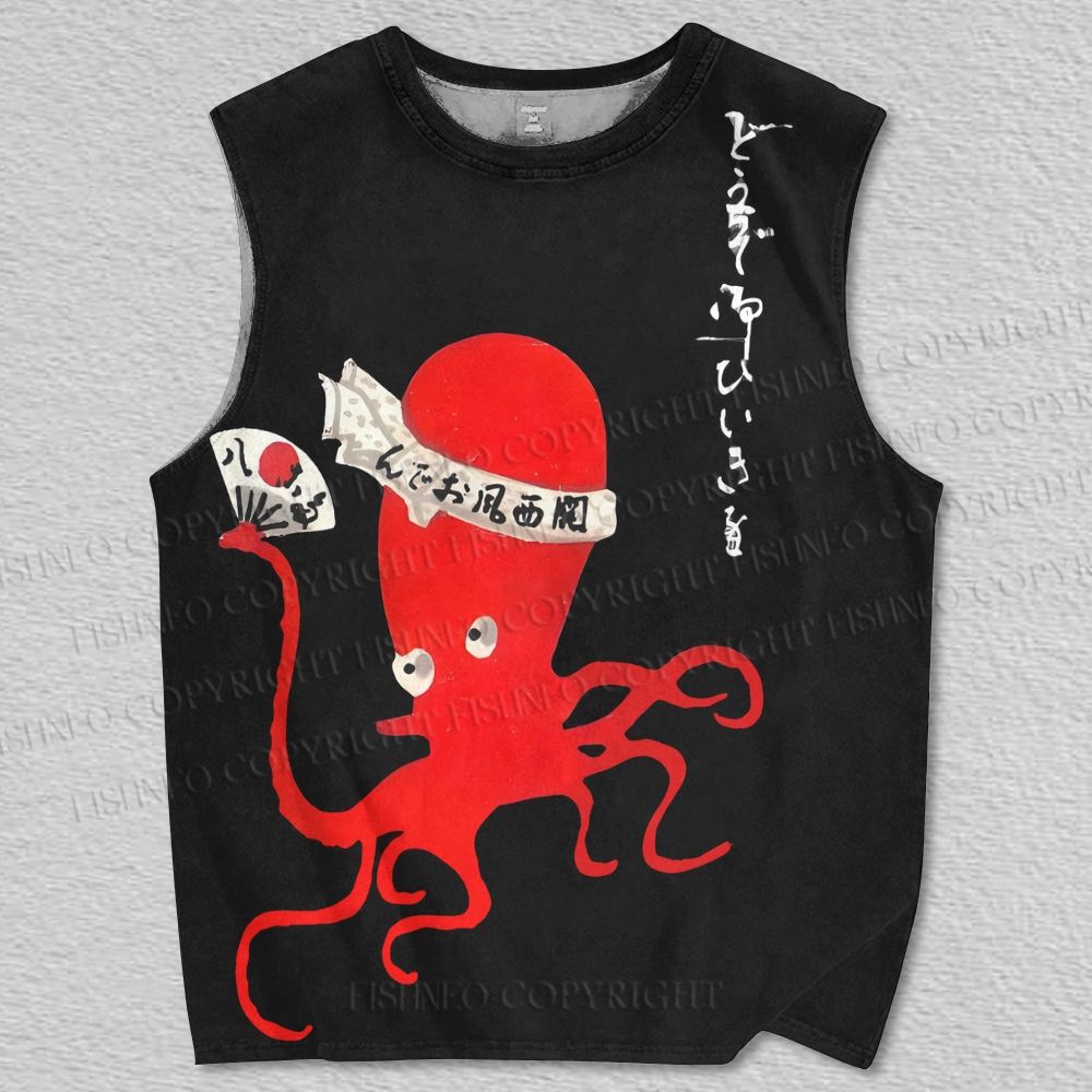 Unisex Vintage Japanese Octopus Printed Tank Top