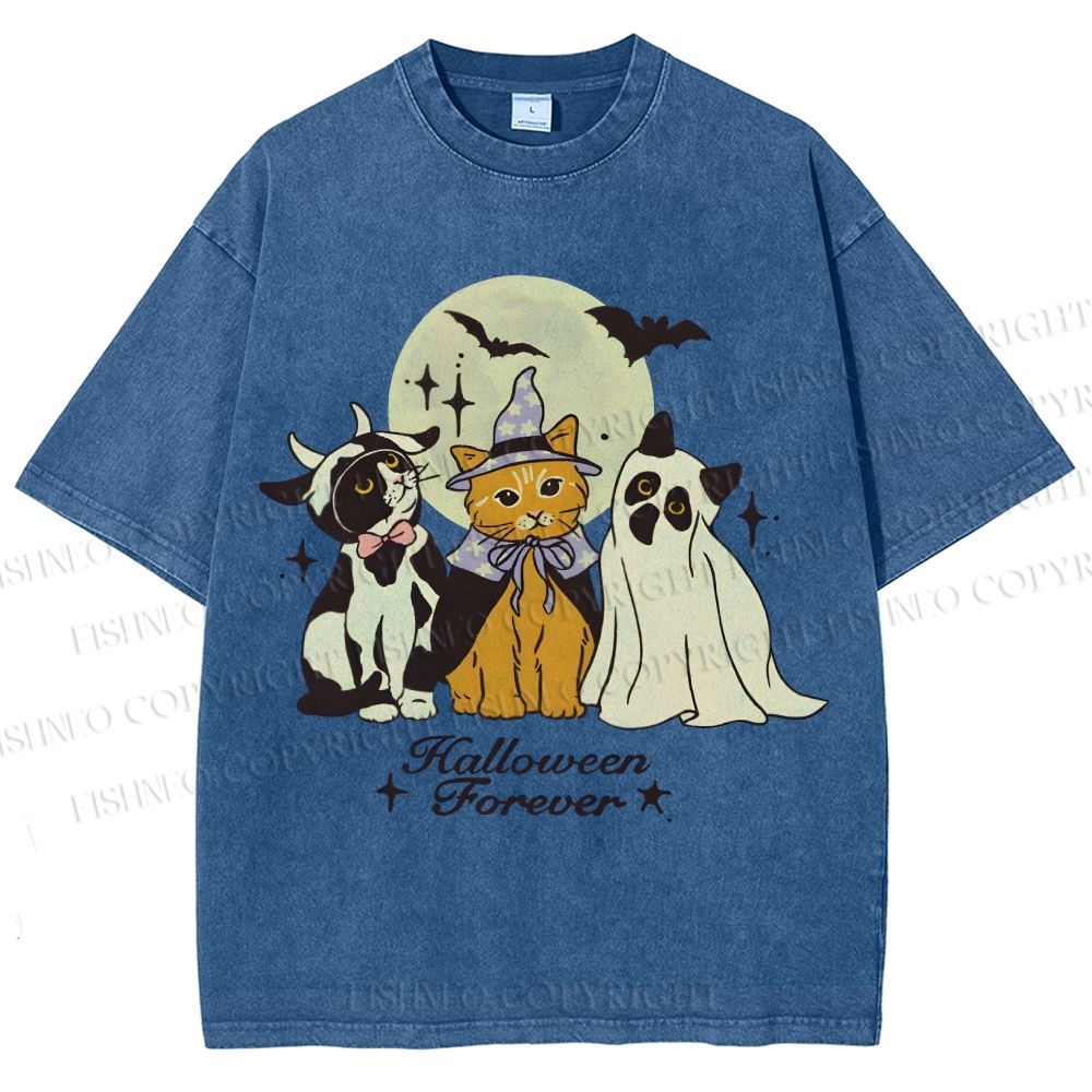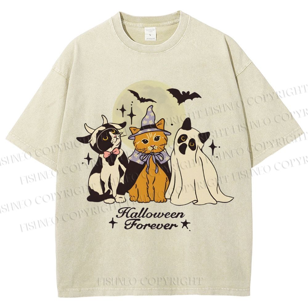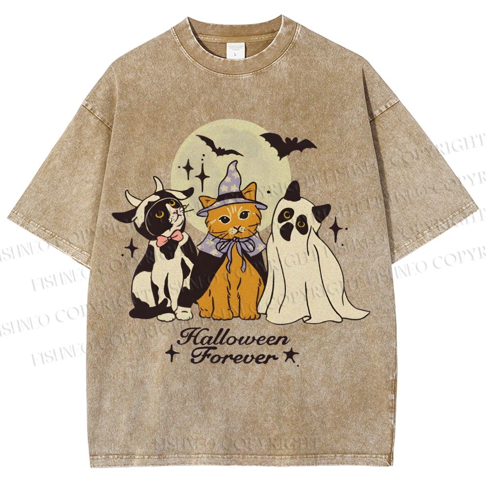 Unisex Halloween Cat Printed Washed Tee