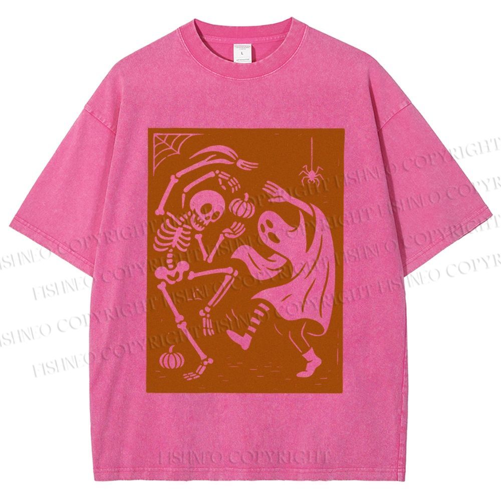 Unisex Vintage Halloween Ghost Skull Printed Washed Tee