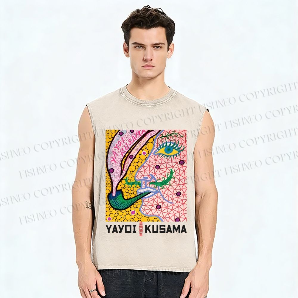 Unisex Yayoi Kusama Eye Graffiti Printed Washed Tank Top