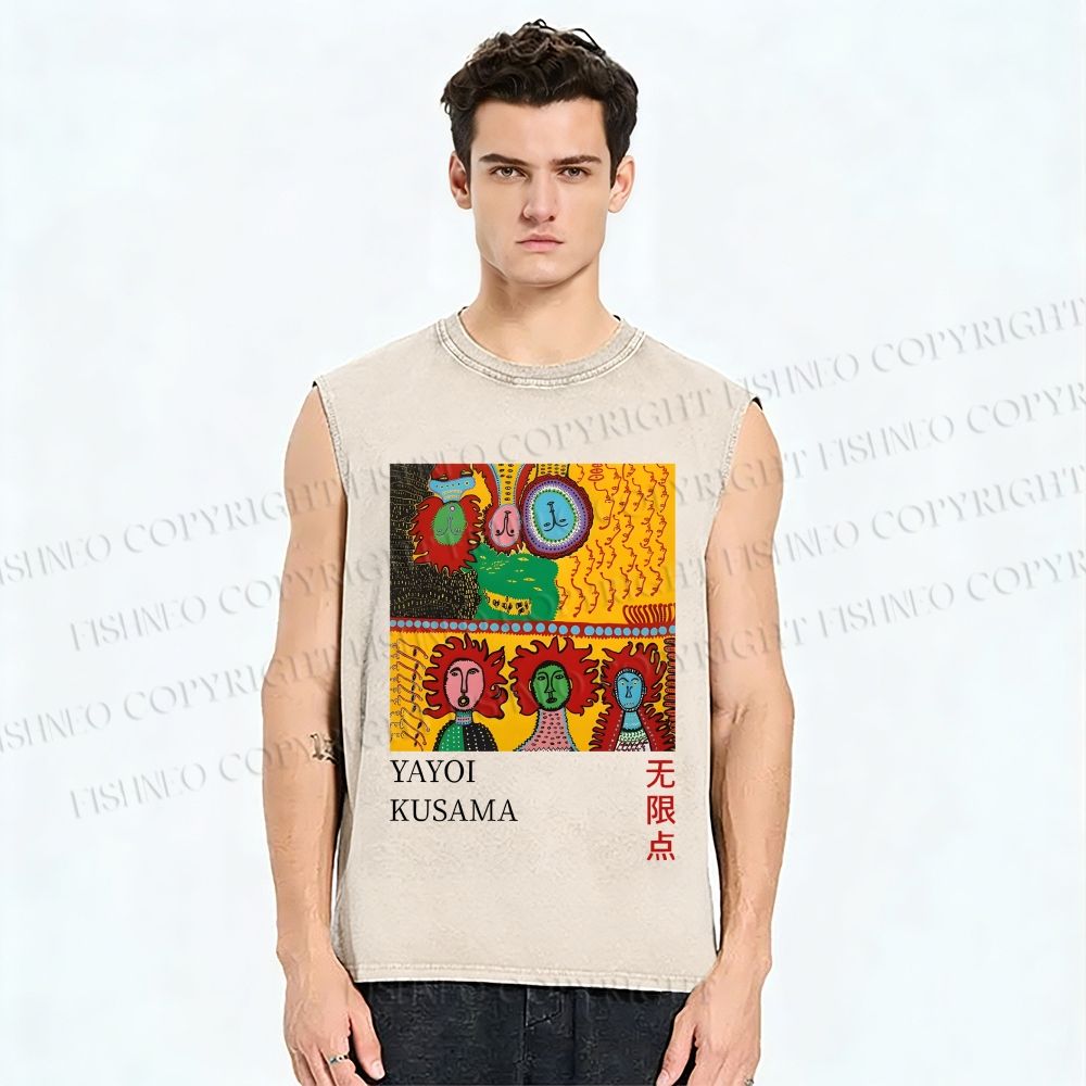 Unisex Yayoi Kusama Weird Face Printed Washed Tank Top