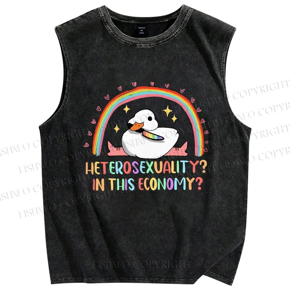 Unisex Heterosexuality in This Economy Printed Washed Tank Top