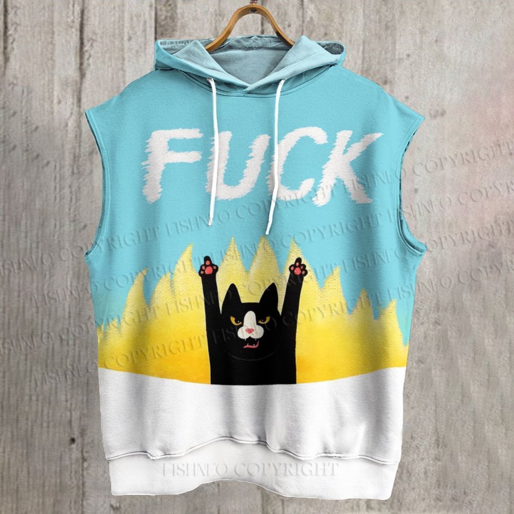 Unisex Fuck Cat Printed Sleeveless Hoodie