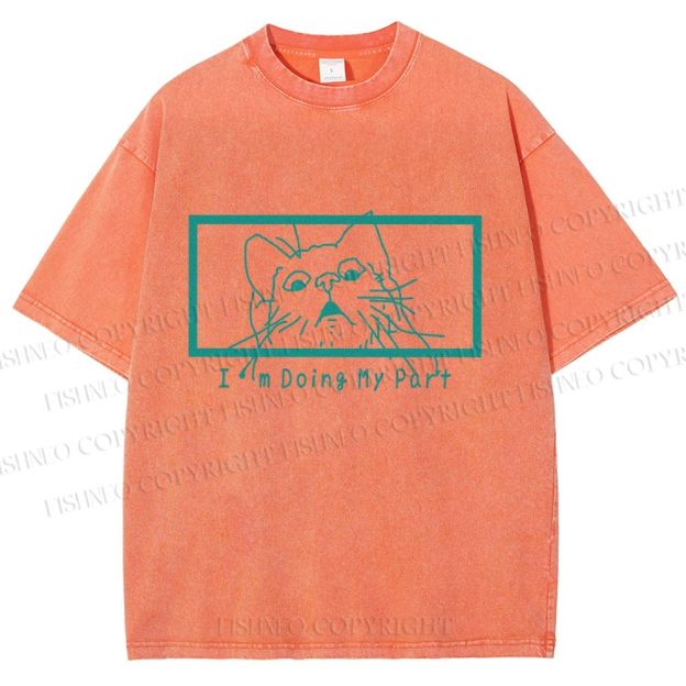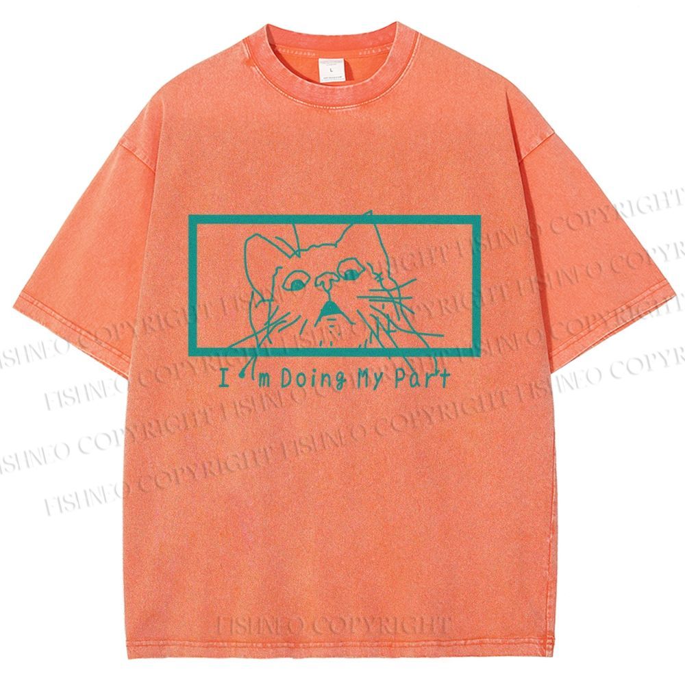 Unisex I'm Doing My Part Silly Cat Printed Washed Tee