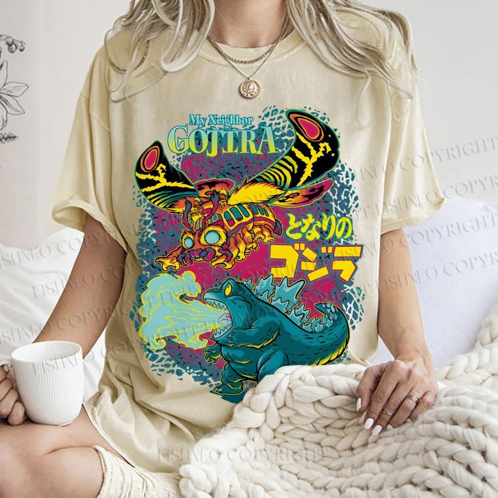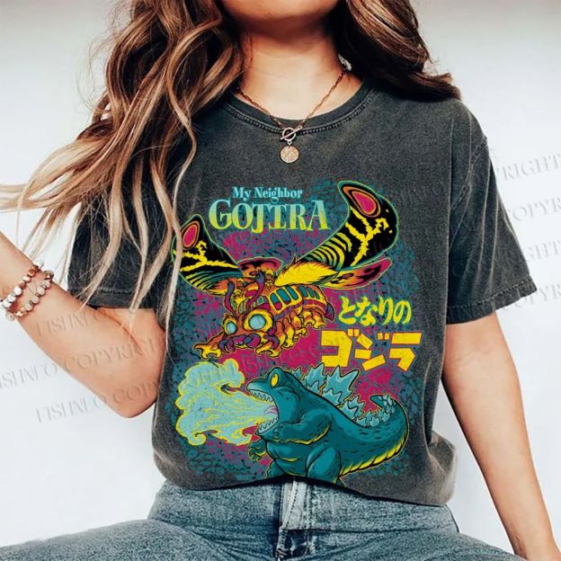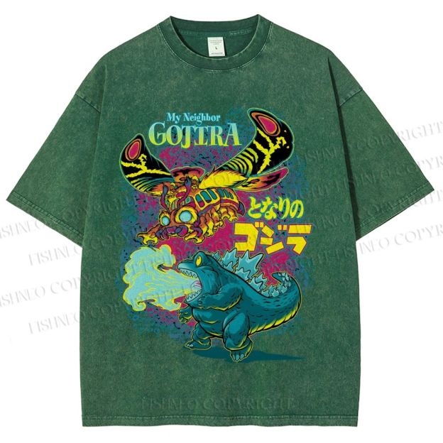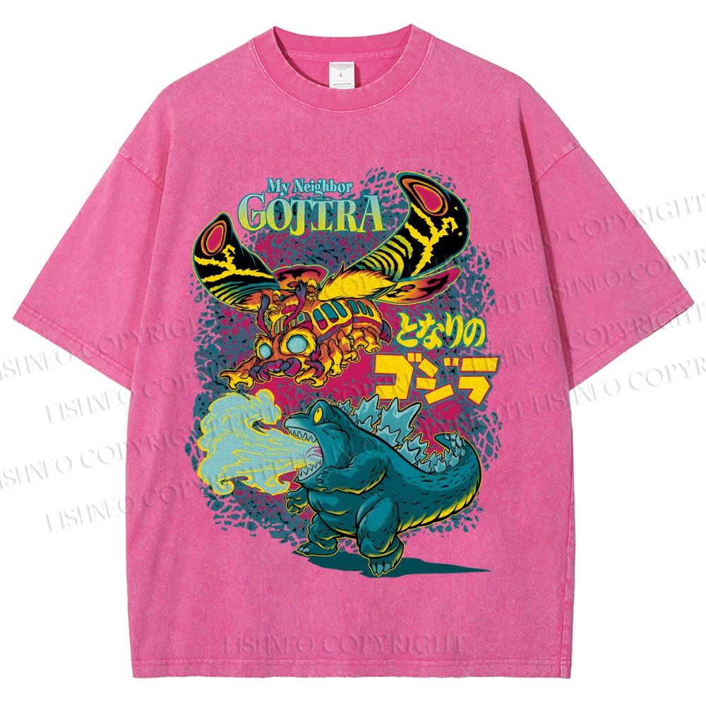 Unisex Monster Godzilla Printed Washed Tee