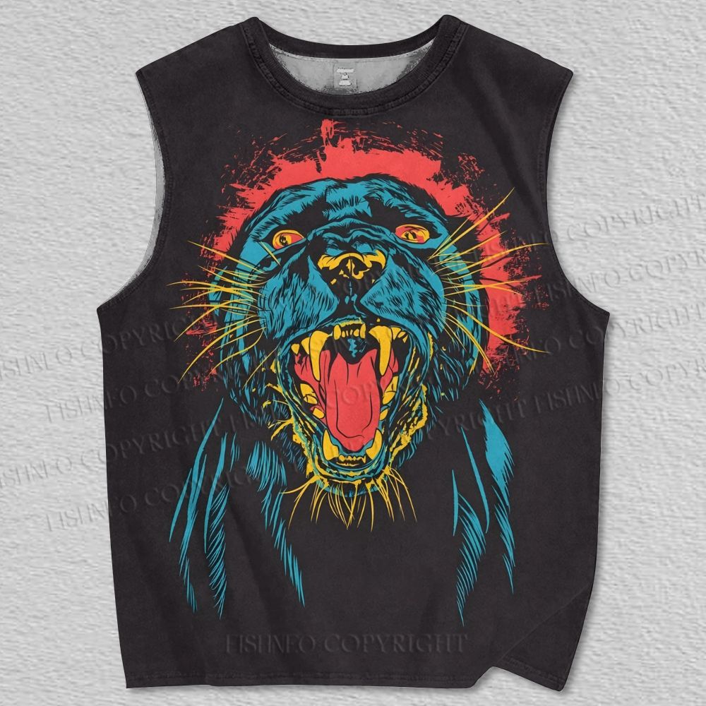 Unisex Angry Black Panther Printed Tank Top
