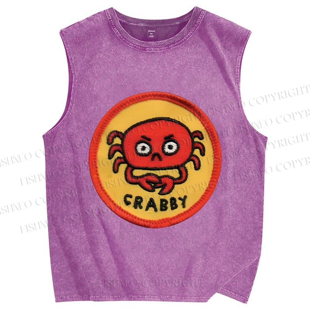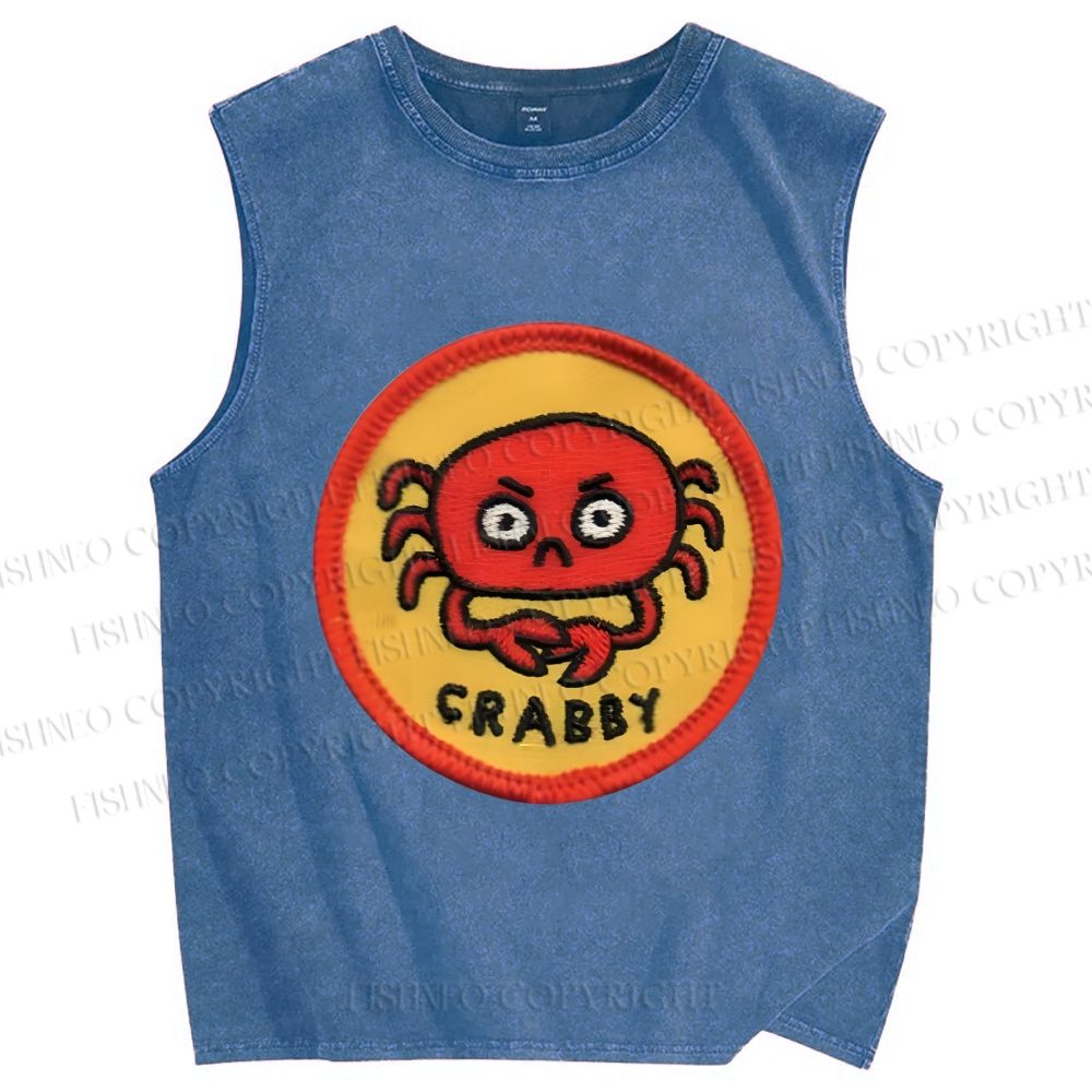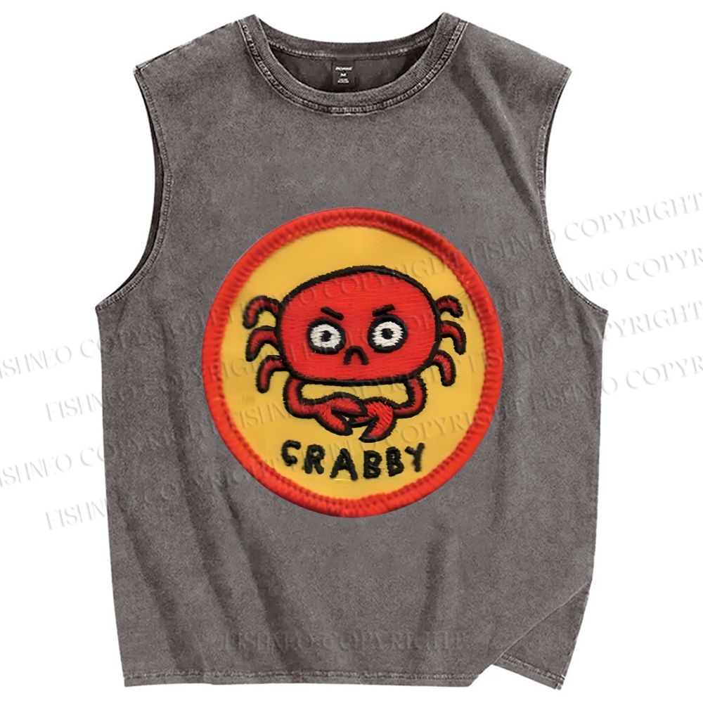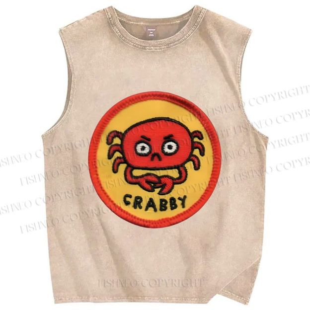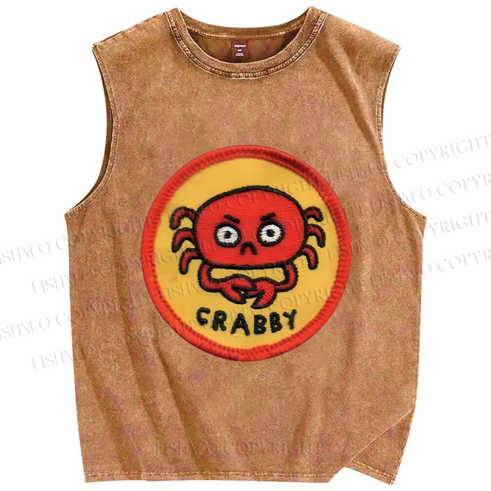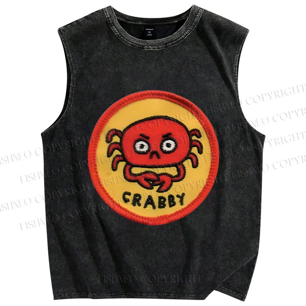 Unisex Crabby Crab Printed Washed Tank Top