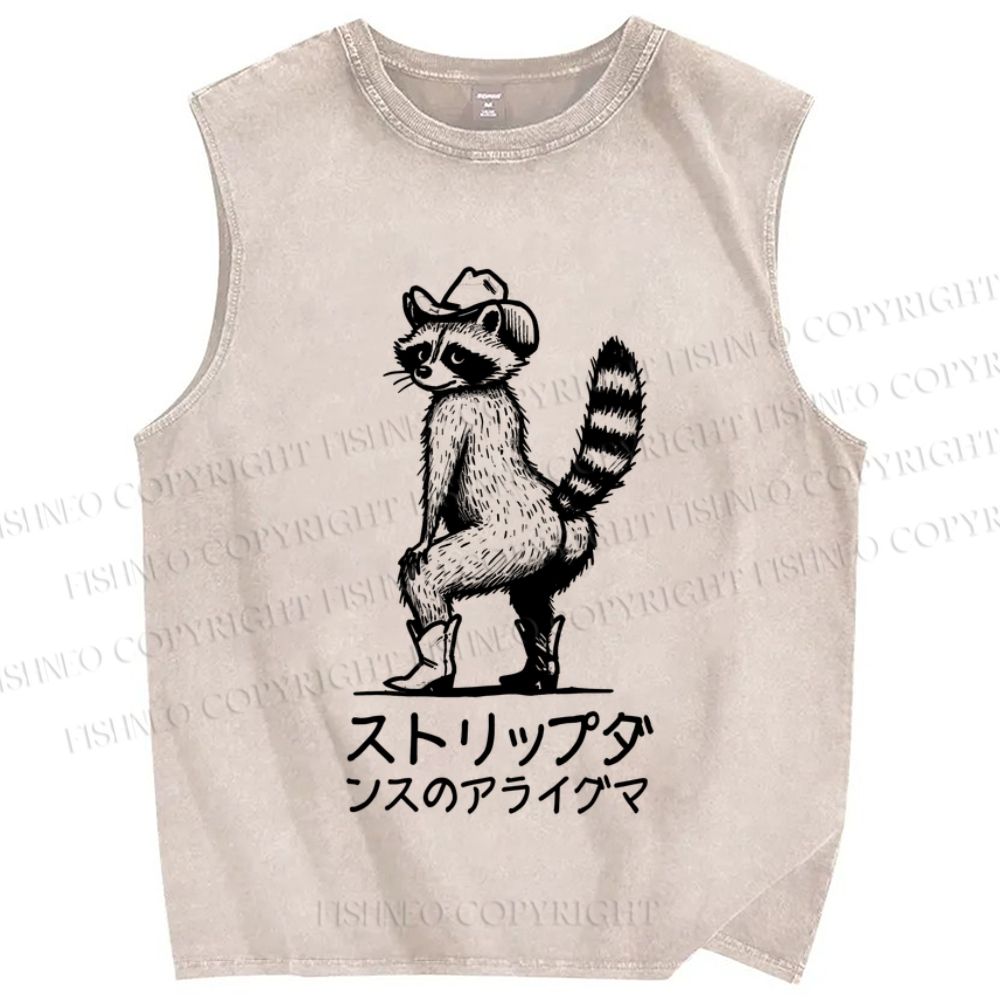 Unisex Stripper Raccoon Printed Washed Tank Top
