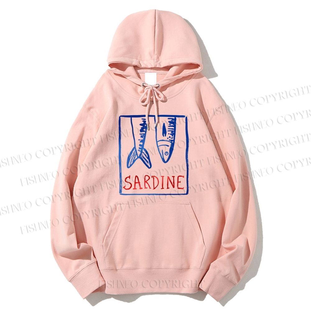 Unisex Casual Vintage Sardine Fish In Box Cotton Printed Hoodie