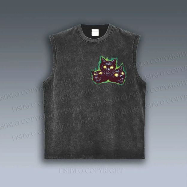 Unisex Cat Printed Vintage Tank Top