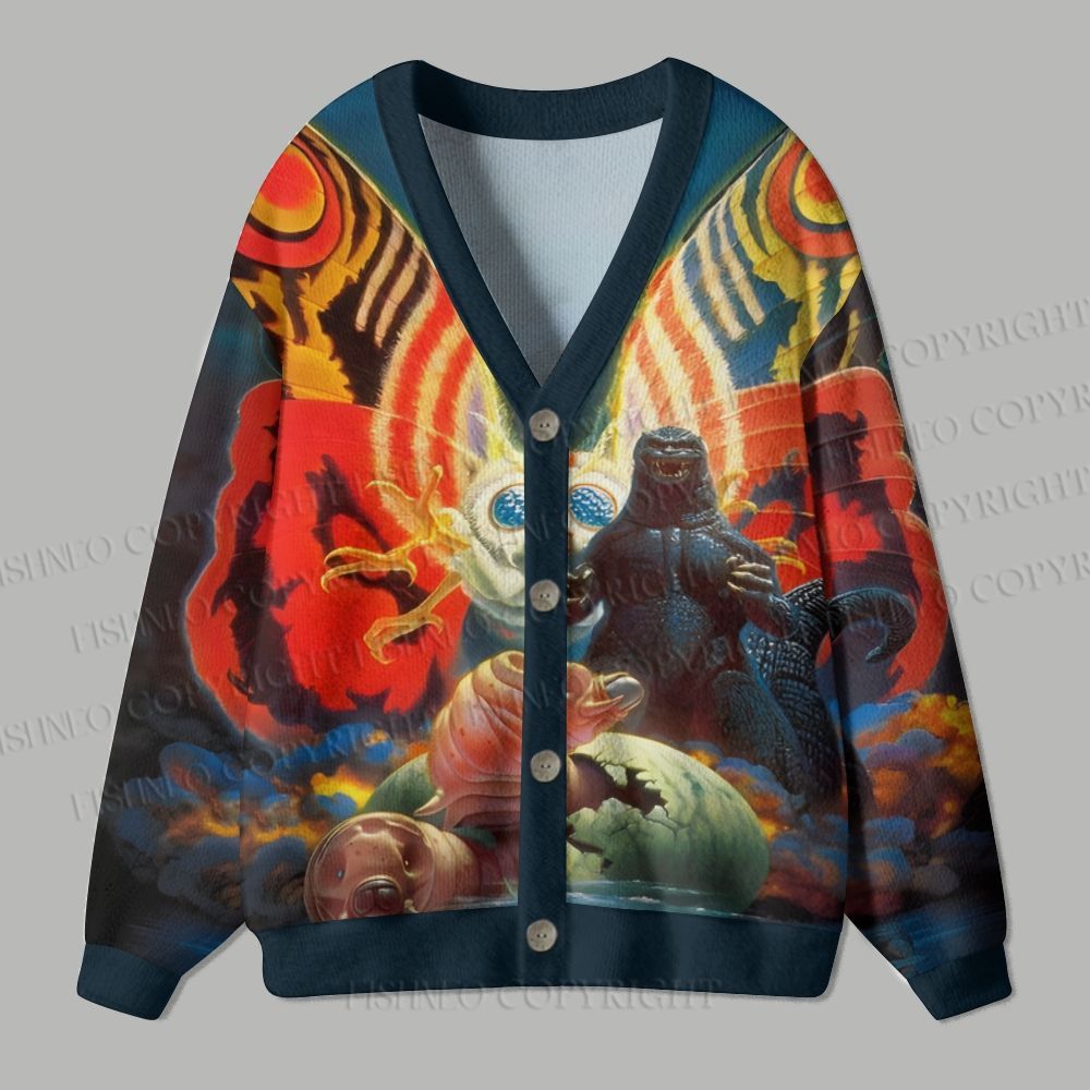 Vintage Godzilla Mothra Ugly Cardigan Sweater
