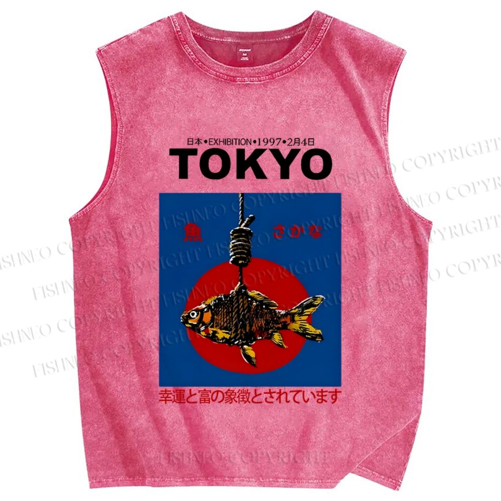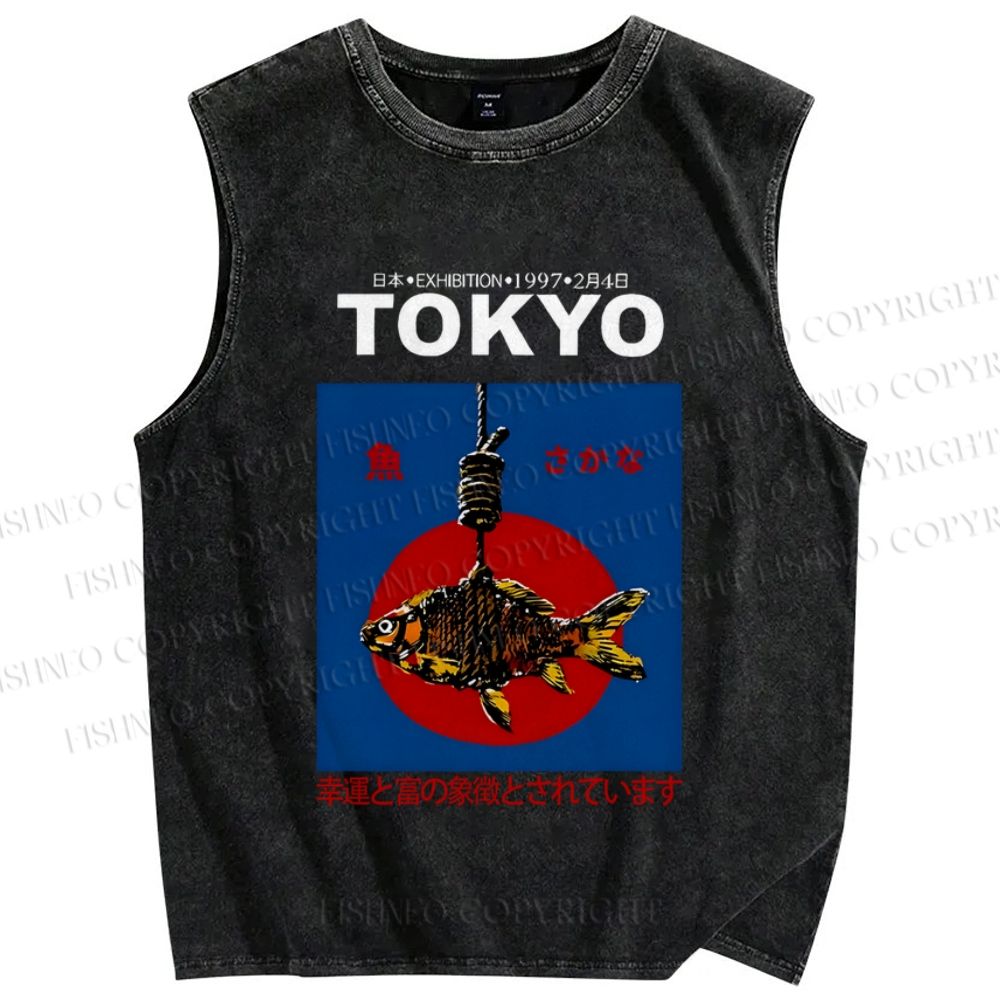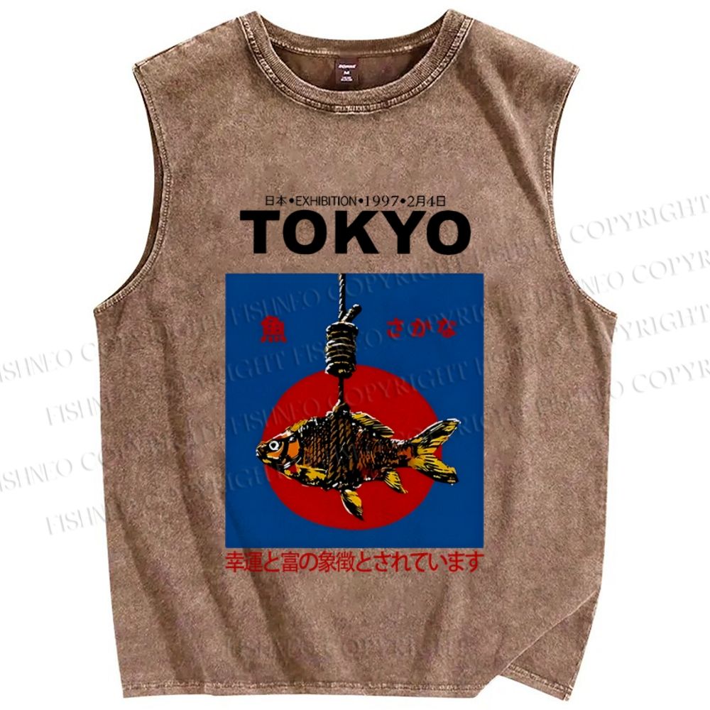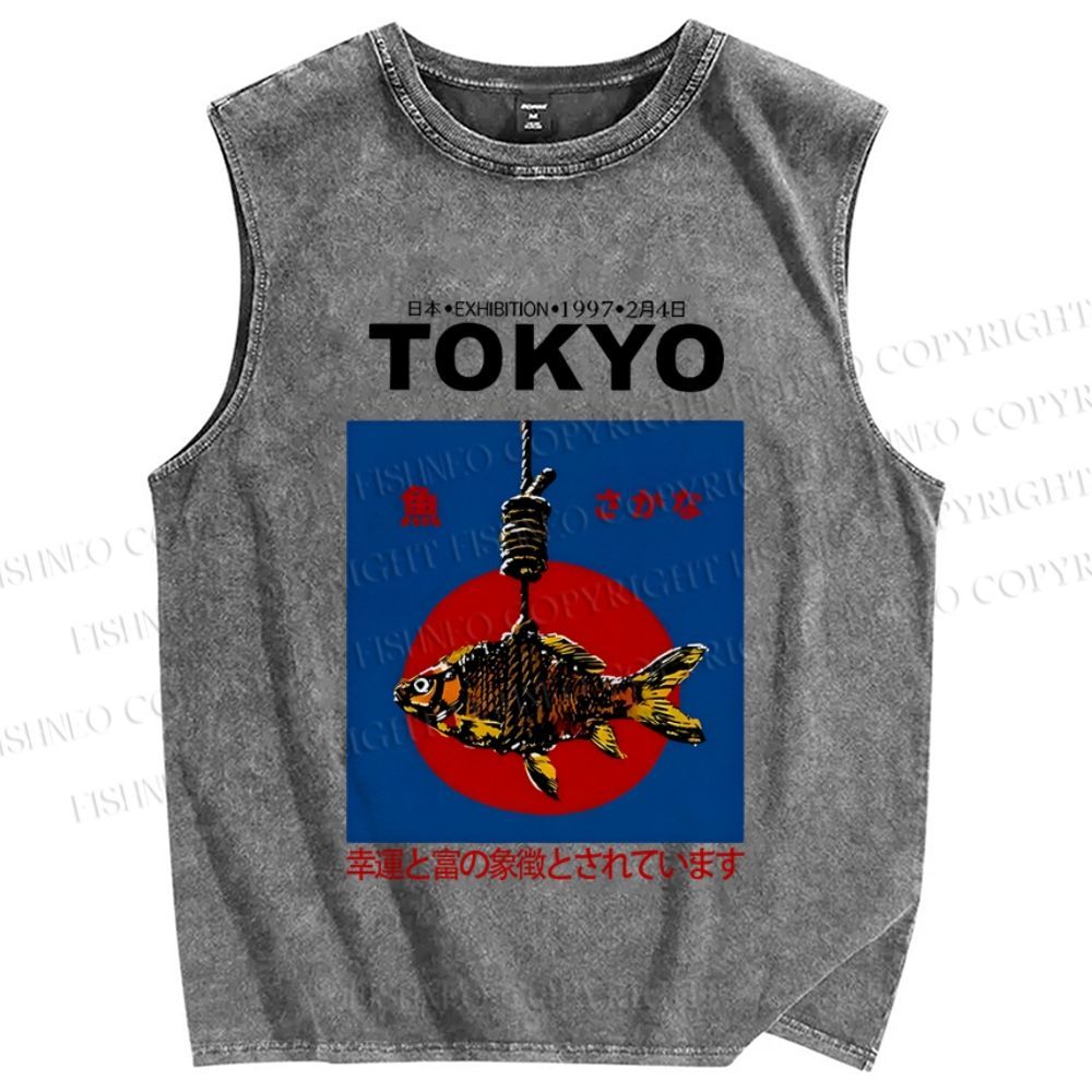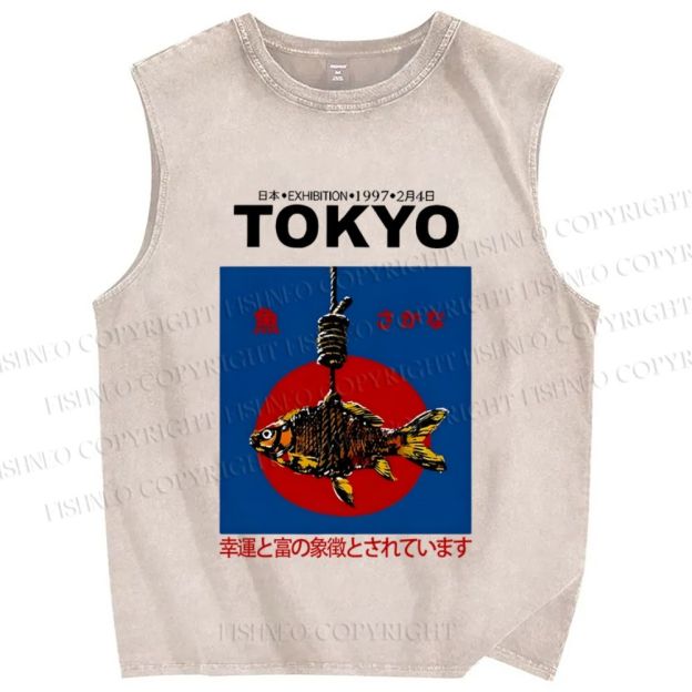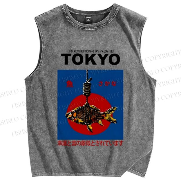 Unisex 1997 Tokyo fish retro Japanese Vintage Printed Washed Tank Top
