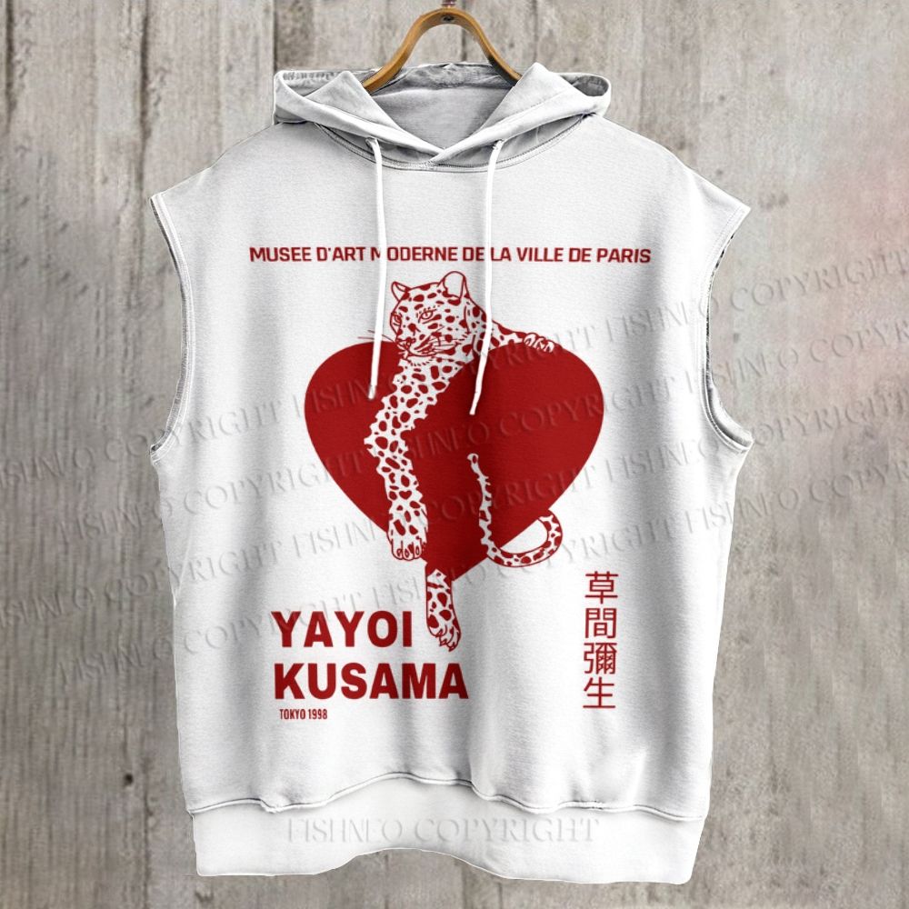 Unisex Yayoi Kusama Panther With Heart Printed Sleeveless Hoodie