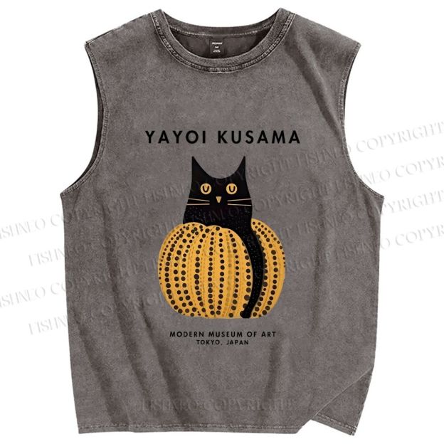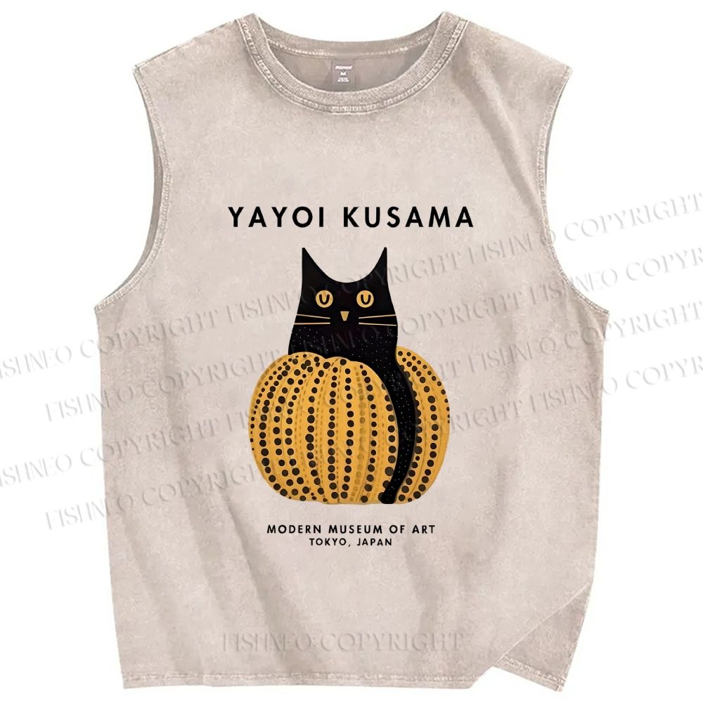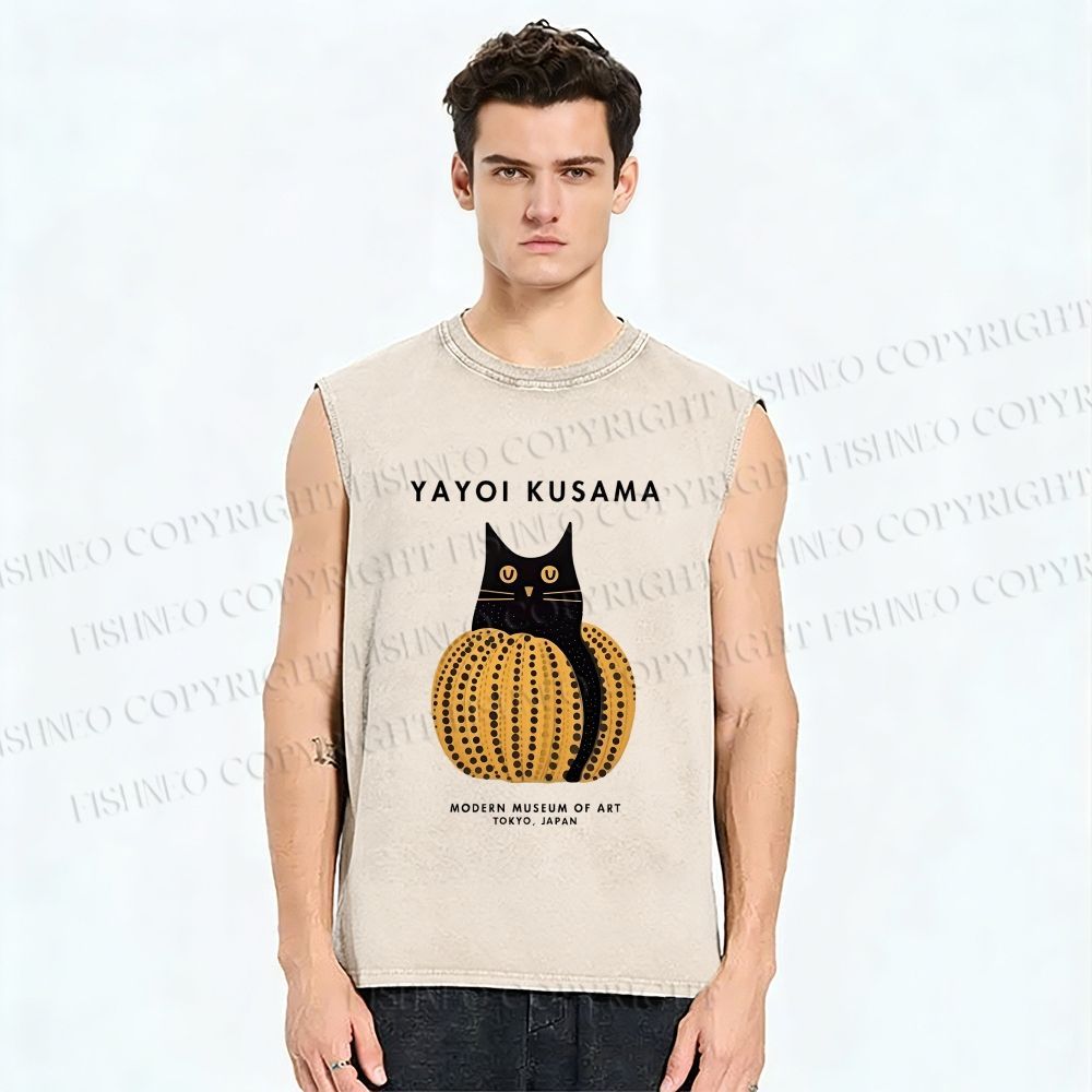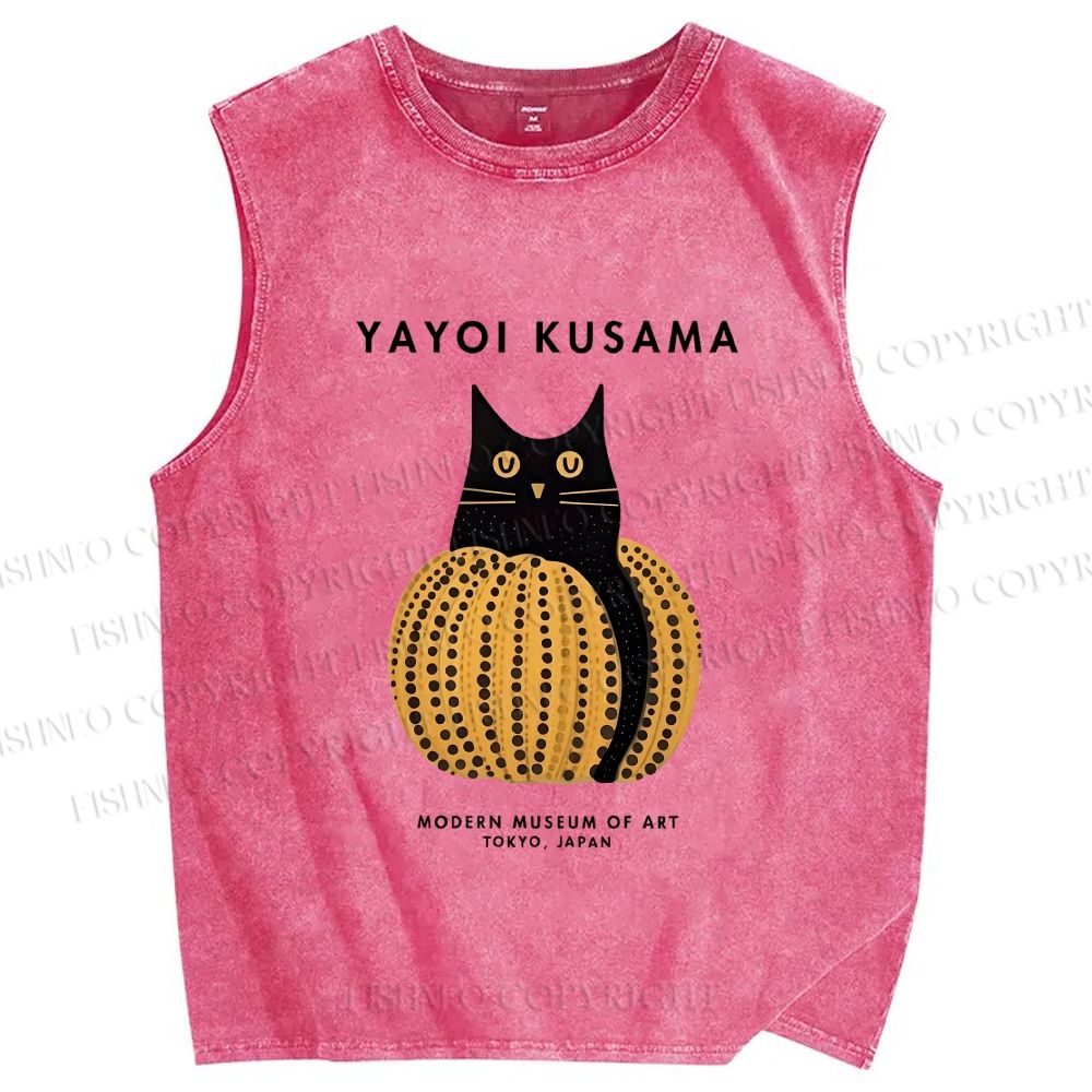 Unisex Yayoi Kusama Pumpkin Cat Printed Washed Tank Top