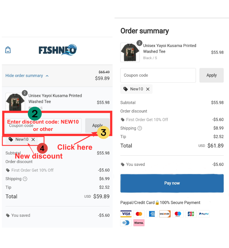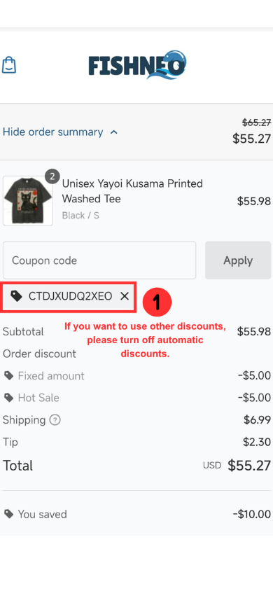 If you have any questions about using your discount, please feel free to contact our customer service team at service@fishneo.com