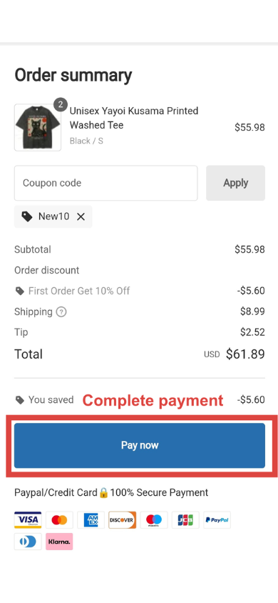 There are three pages where you can apply a coupon: The order summary page; The payment page.