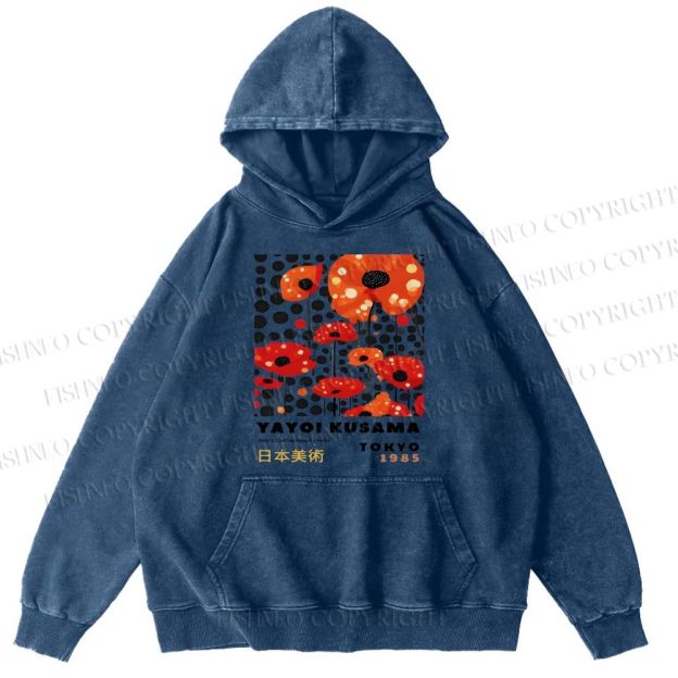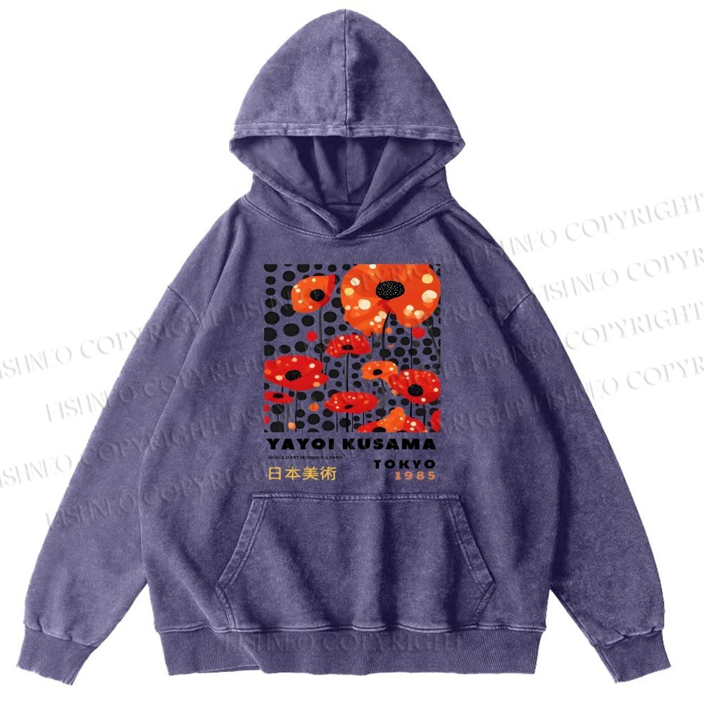 Unisex Casual Japanese Yayoi Kusama Flower Printed Washed Hoodie
