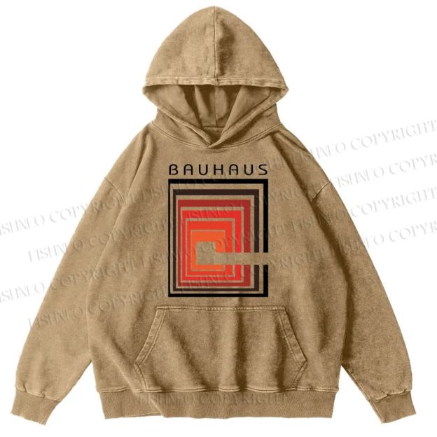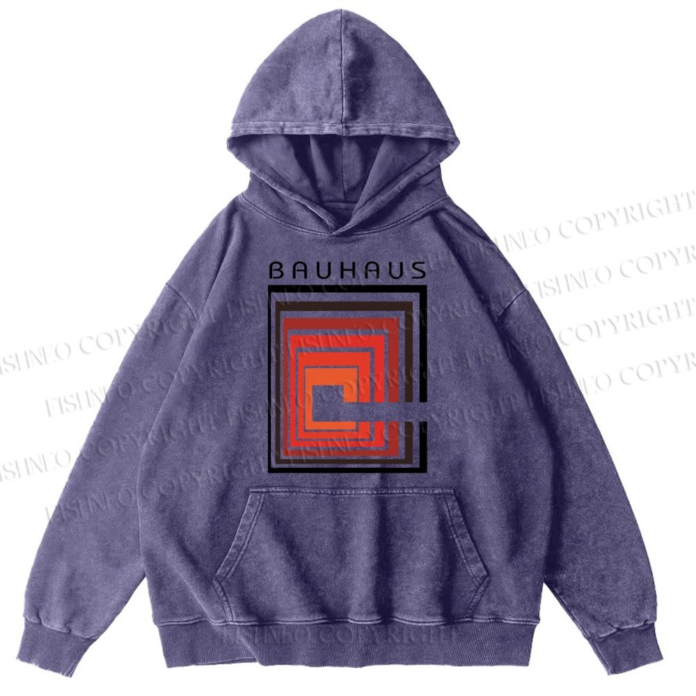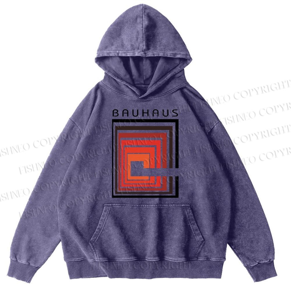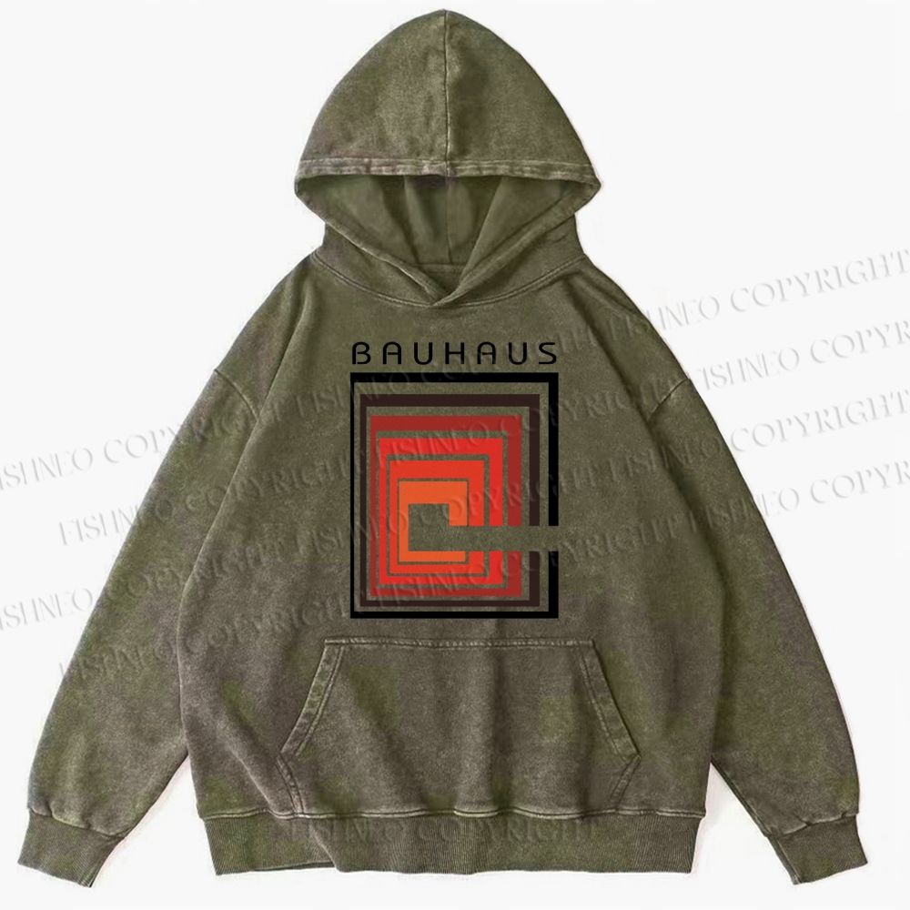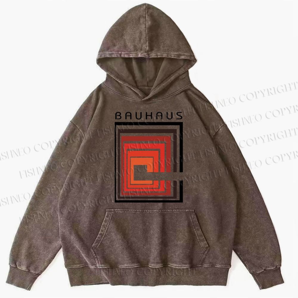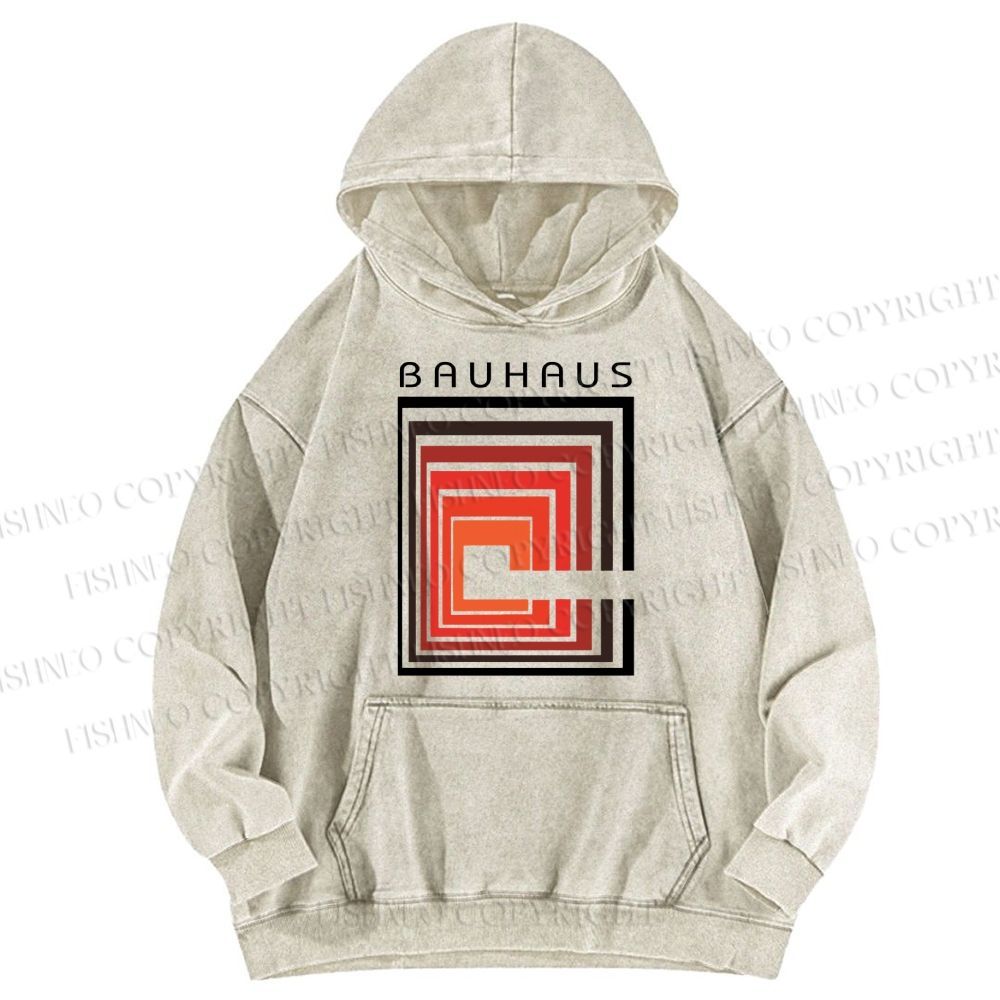 Unisex Casual Vintage Bauhaus Design Printed Washed Hoodie