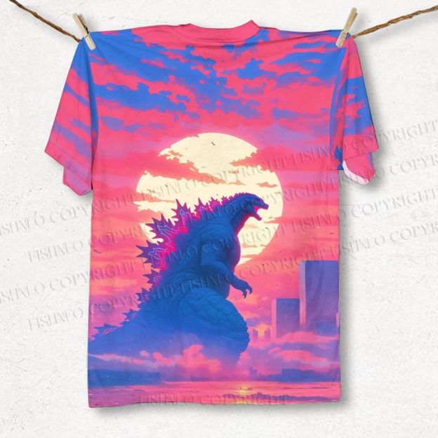 Unisex Godzilla Sunset Printed Classic Cotton T-shirt