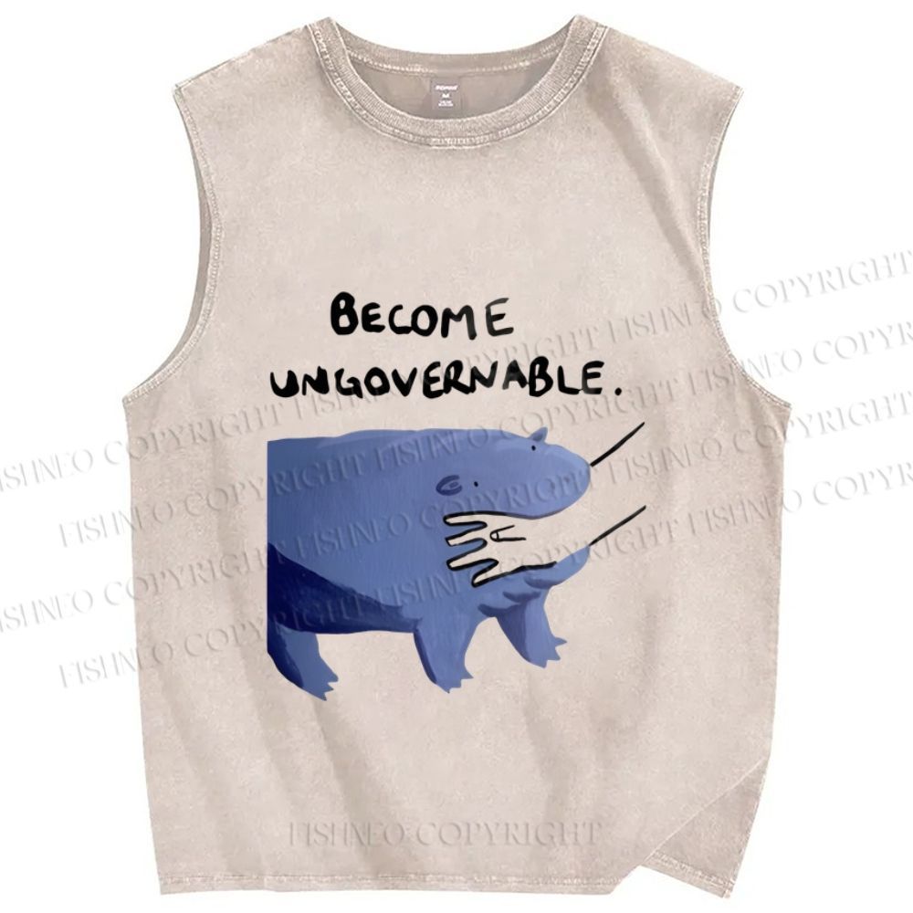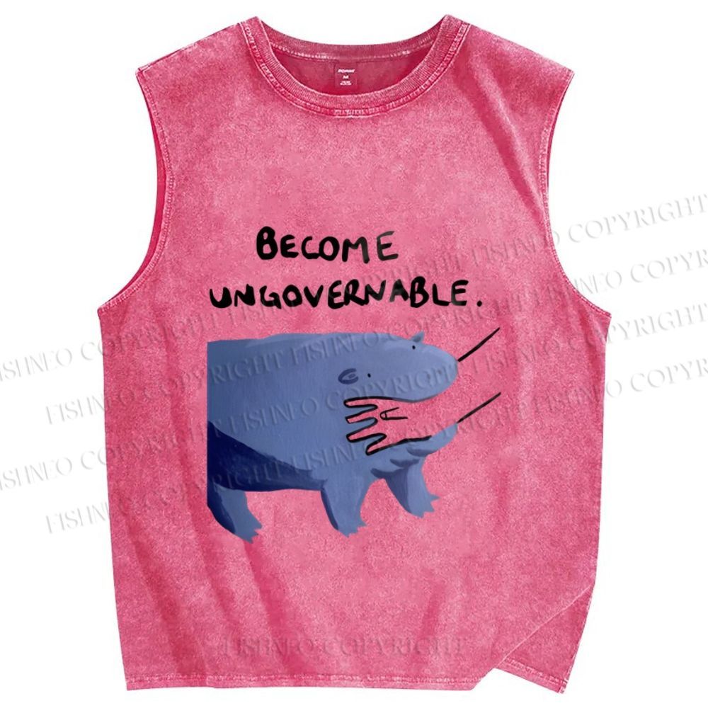 Unisex Hippo Bites Someone's Arm Printed Washed Tank Top