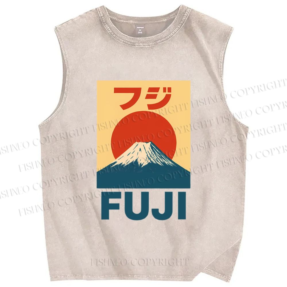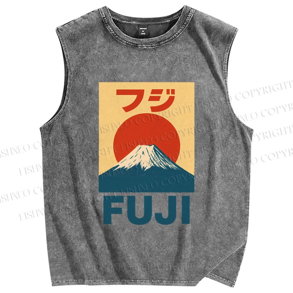 Unisex Vintage Japanese Mount Fuji Printed Washed Tank Top