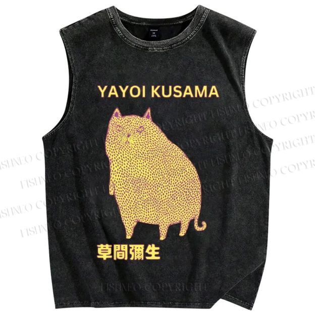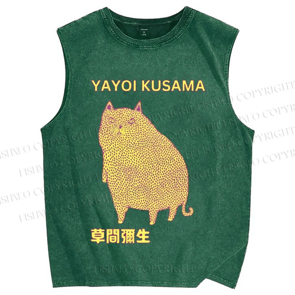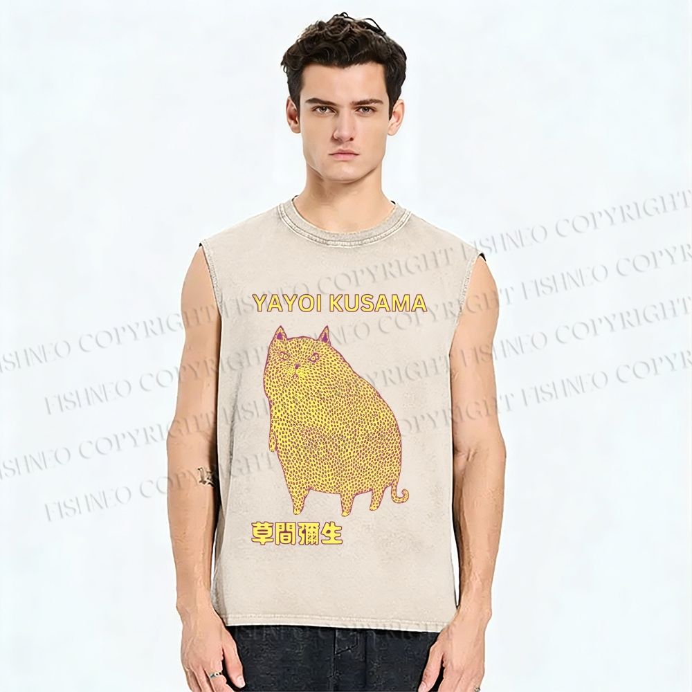 Unisex Yayoi Kusama Big Cat Printed Washed Tank Top