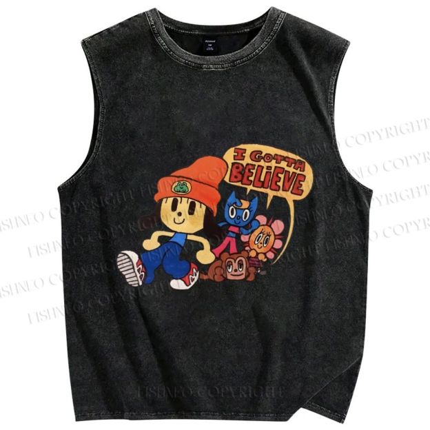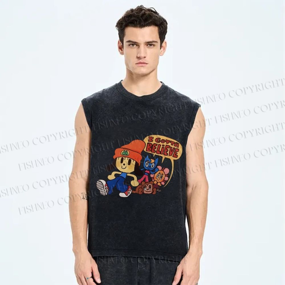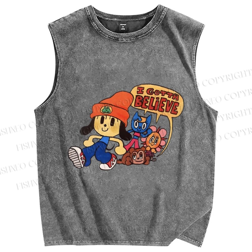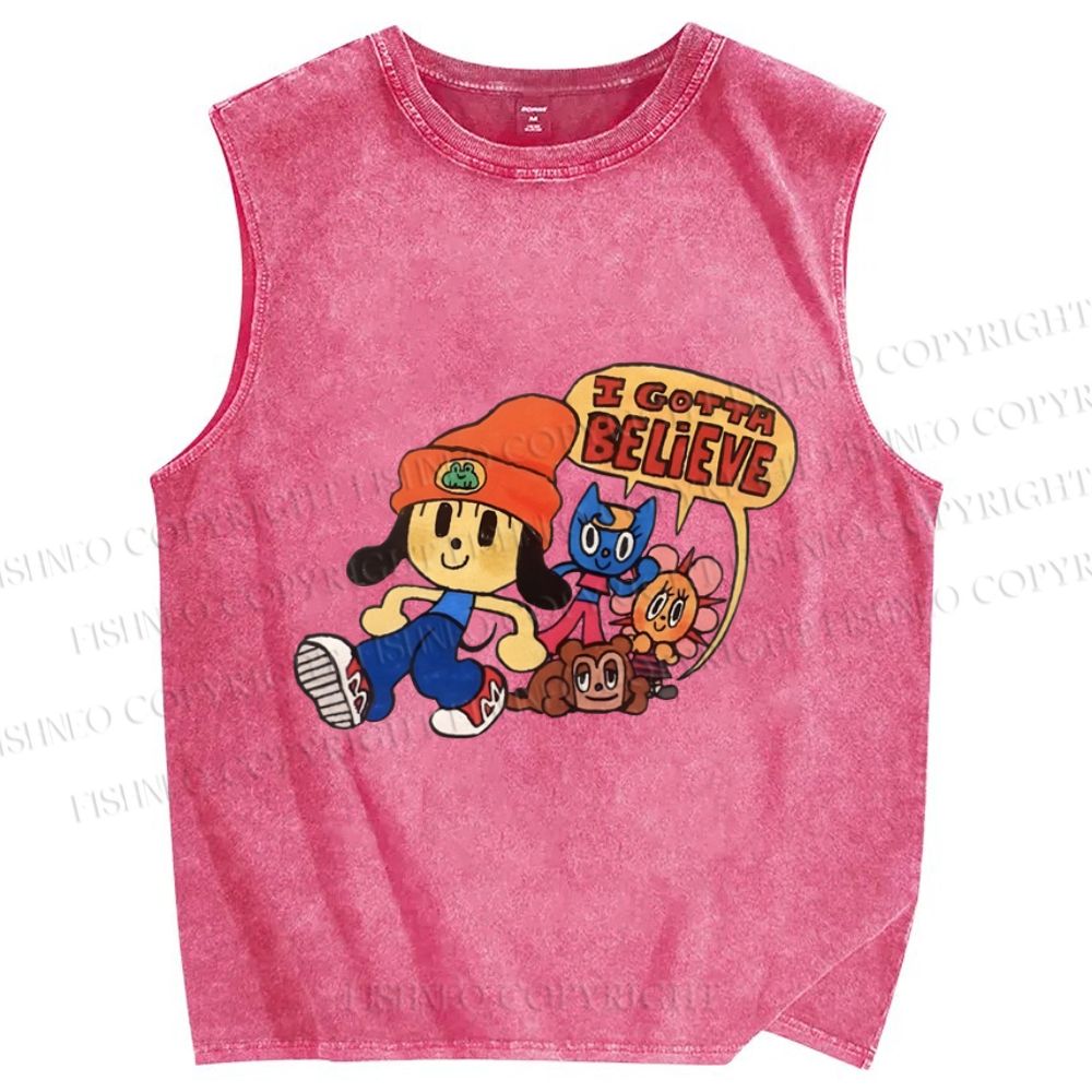 Unisex Parappa Dog I Gotta Believe Printed Washed Tank Top