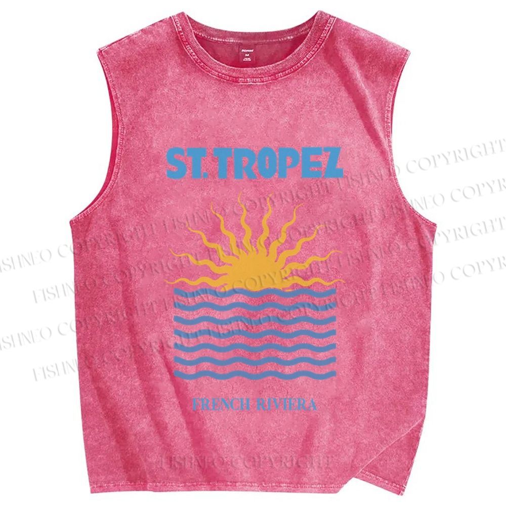 Unisex Sunrise Sea Wave Printed Washed Tank Top