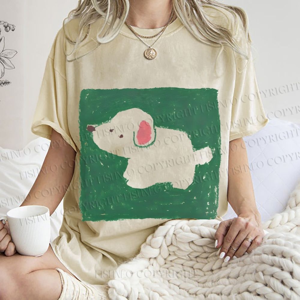 Unisex Dog Painting Printed Washed Tee